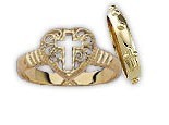 Our men's and women's religious rings are engraved with images and crosses. These religious rings are available in gold or silver. They offer elegance and beauty as a religious jewelry item while also serving as a spiritual and religious reminder. Some of our styles of religious rings have crosses, some are Rosary rings and others have hearts and crosses. There are a variety of styles and metals to choose from. If you don’t find the religious ring you’re looking for here in our religious jewelry section try our gold signet rings that are customizable with your photo, images or text.