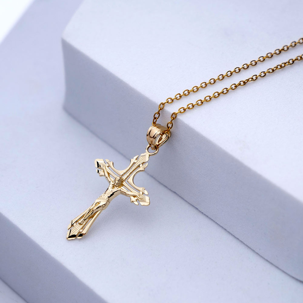 | In Depth | 14k Diamond-cut Crucifix Pendant. Weight: 0.92 gram. |