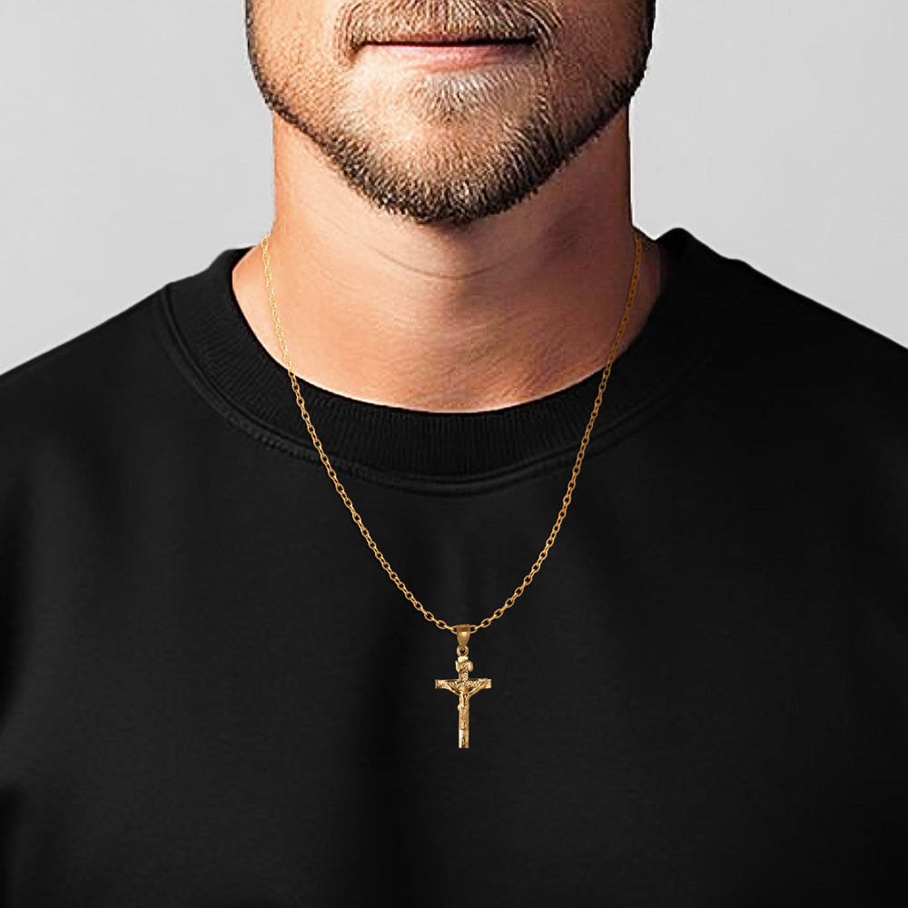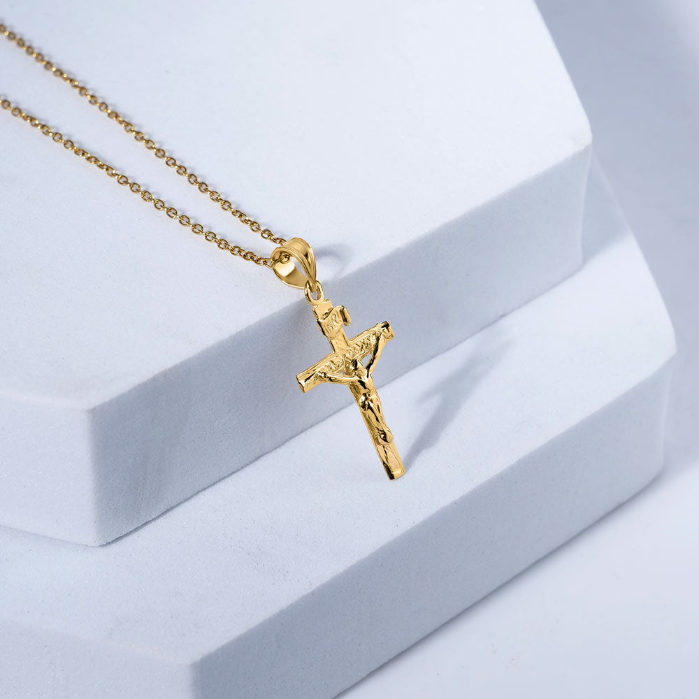 In Depth 14k INRI Crucifix Charm. Weight: 1.1 grams.