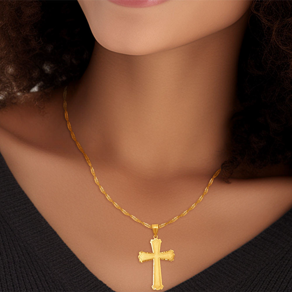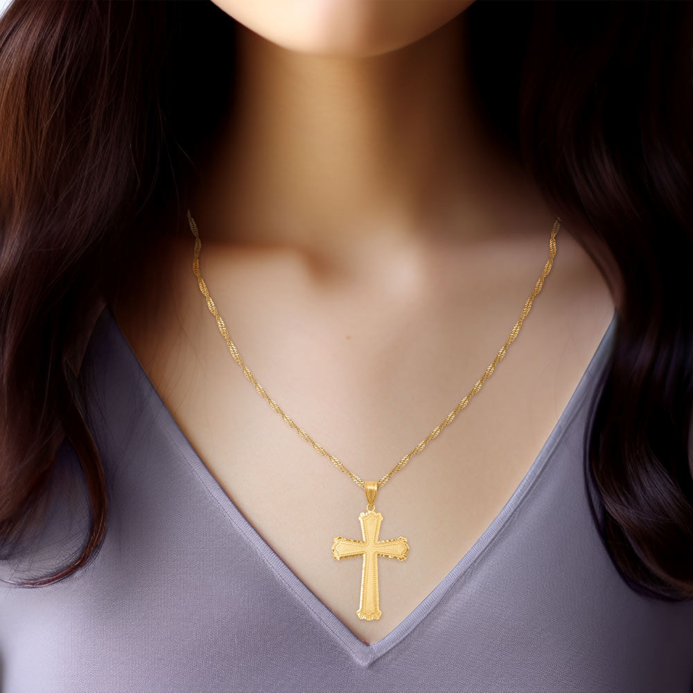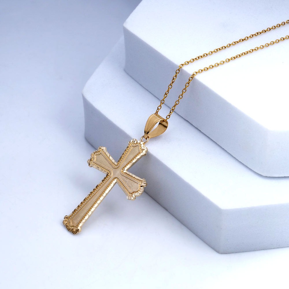 14K Diamond-cut Diagonal Lined Cross Pendant