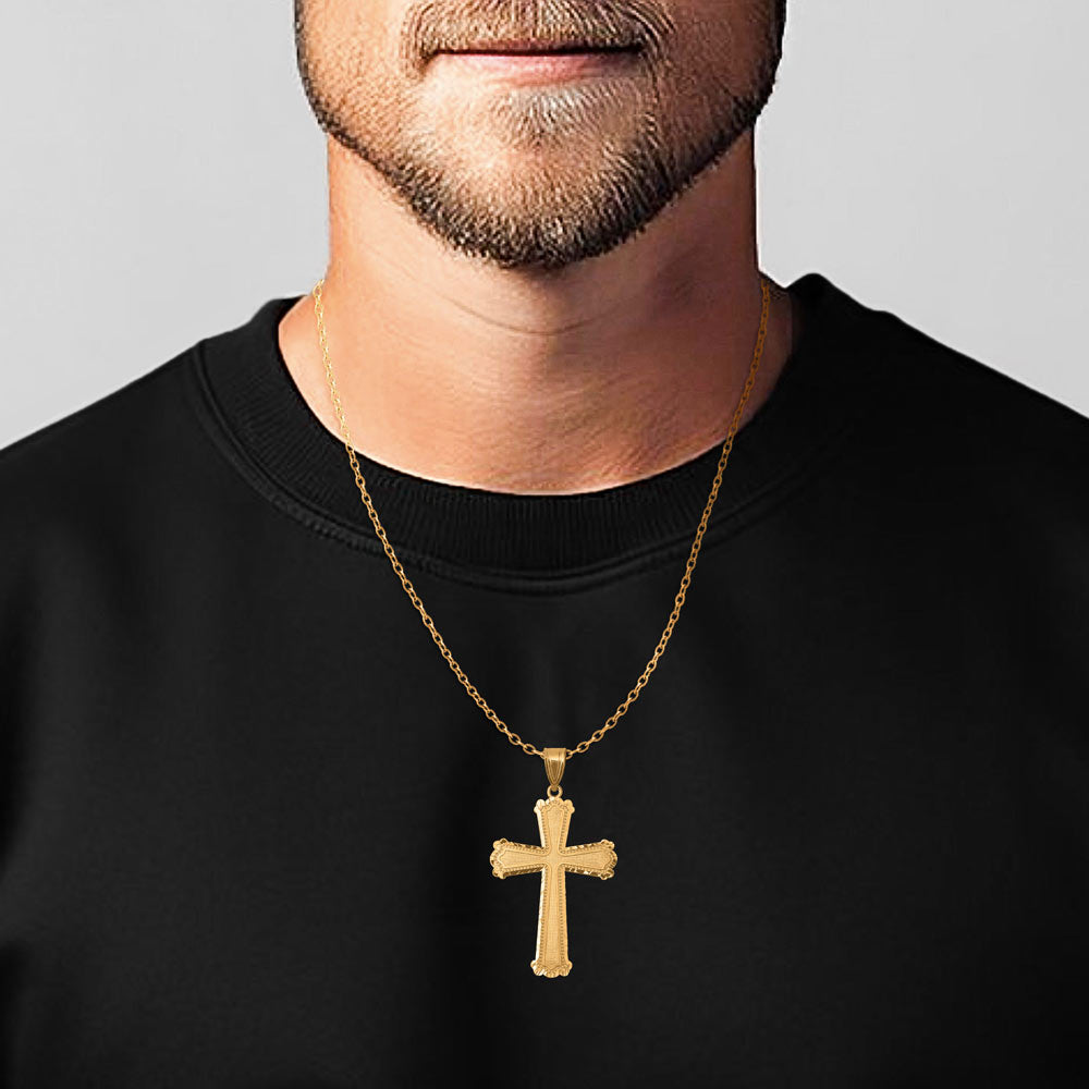 In Depth 14K Diamond-cut Diagonal Lined Cross Pendant. Weight: 3.04 grams.