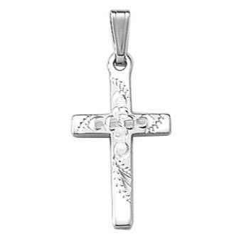 - This Beautiful Solid Cross has a hand engraved design on the entire front and is 2/3 Inch Wide x 3/4 Inch Tall