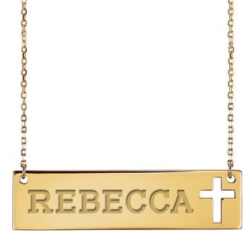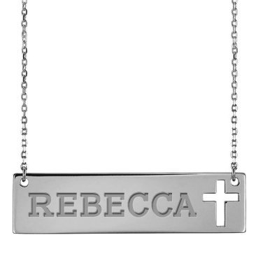 Personalized Name Bar Necklace w/ Cross Design & 18" Chain