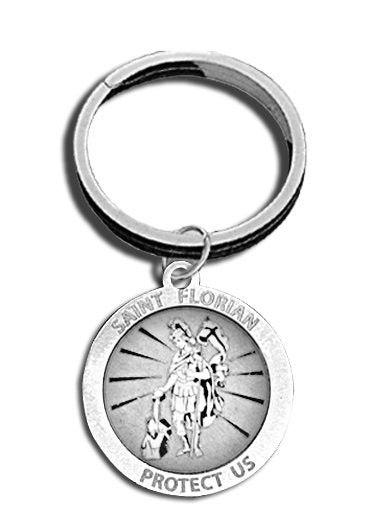 • The Saint Florian Keychain can be engraved with a personalized message on the reverse side * Available in Sterling Silver or 14k Gold Plated. * Medal in two sizes: 1 Inch x 1 Inch (Size of a Quarter) 1-1/4 Inch x 1-1/4 Inch (Size of a Half Dollar) * Custom Sized Available Upon Request. This Solid 14K Gold Saint Florian Medal is the patron Saint of Firefighters. He held an high administrative post in the Roman Army. In the 4th century their was a fierce persecution of Christians. Saint Florian was tortured and killed.