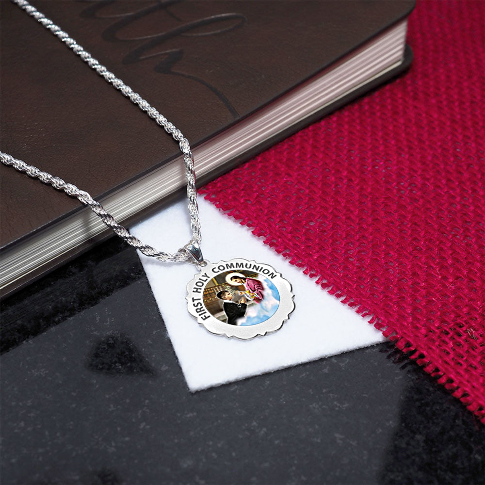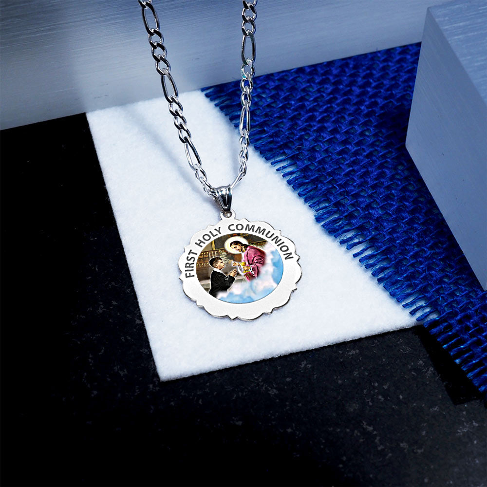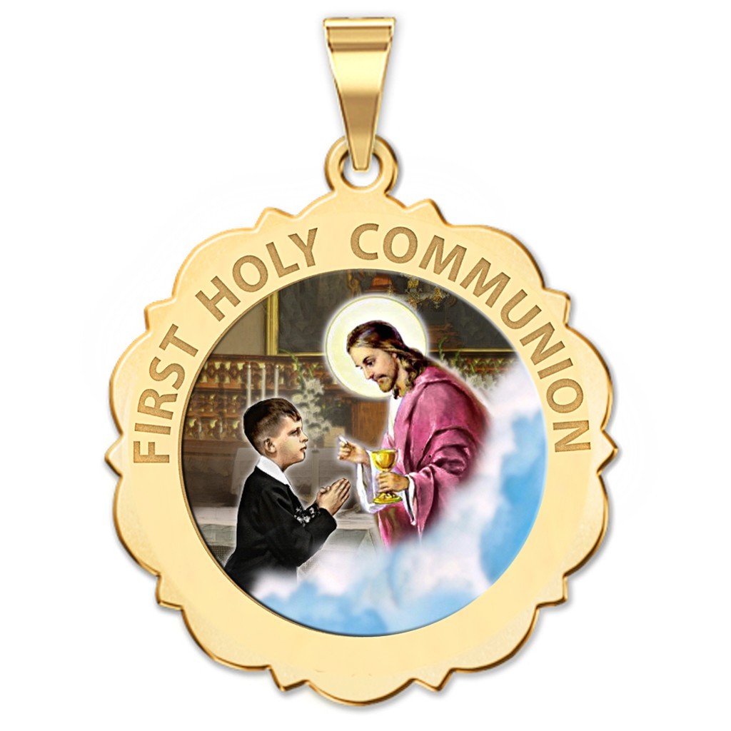 First Holy Communion Scalloped Round Medal (Boy) "Color"
