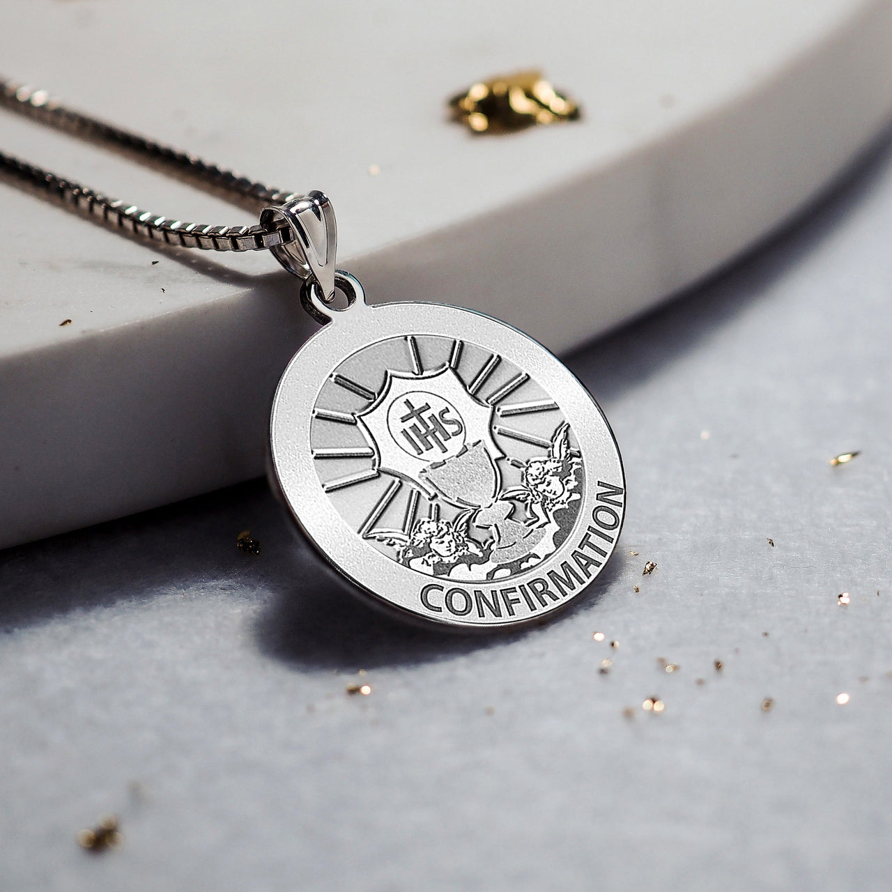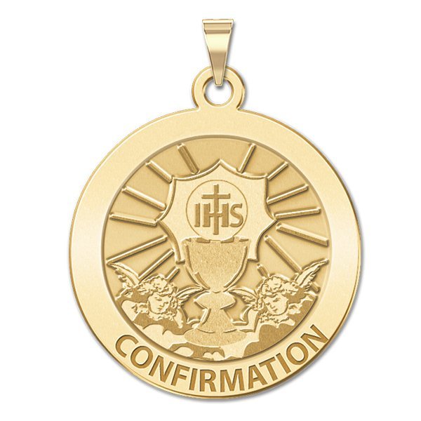 • This 14K Solid Gold Confirmation Medal is a reminder of this important step in their Spiritual growth, receiving the Holy Spirit in a special way.