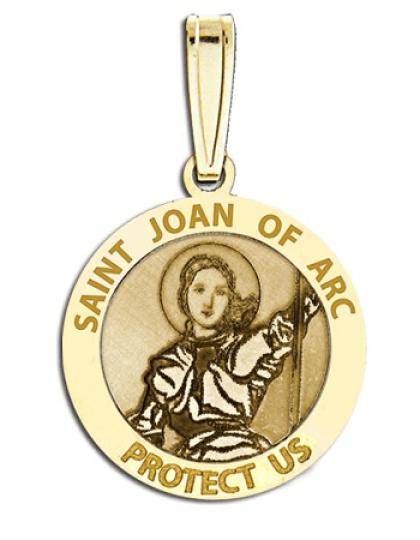 • Joan of Arc, or Jehanne d'Arc in French, (c. 1412 May 30, 1431) also known as "the Maid of Orleans", was a 15th century virgin saint and national heroine of France. A peasant girl born in Eastern France, Joan led the French army to several important victories during the Hundred Years' War, claiming divine guidance, and was indirectly responsible for the coronation of King Charles VII. She was captured by the English and tried by an ecclesiastical court led by Bishop Pierre Cauchon, an English partisan; the court convicted her of heresy and she was burned at the stake by the English when she was nineteen years old. Twenty-four years later, the Holy See reviewed the decision of the ecclesiastical court, found her innocent, and declared her a martyr. She was beatified in 1909 and later canonized in 1920. She is patron saint of captives; France; martyrs; opponents of Church authorities; people ridiculed for their piety; prisoners; rape victims; soldiers; Women Appointed for Voluntary Emergency Service; Women's Army Corps Engraving- We will make your engraving fit on the reverse side the best way possible under the symbol. We have the capability of making the symbol smaller on the reverse side in order to get the engraving fit perfectly.