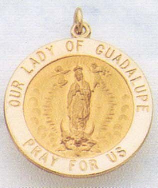 - This 14K Solid Gold medal is a reproduction of the image Mary left on the robe (tilma) Juan Diego was wearing Our Lady of Guadalupe is the patroness of the Americas and Mexico.