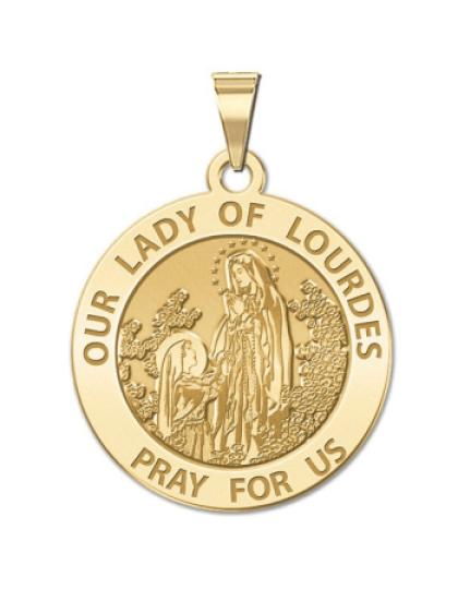 All Religious Medals are Customizable. We can change the spelling, your language, names etc, ex: change "Pray for Us" to "Pray For Me". Just let us know in "special instructions"Color Laser is a patent pending process, color is guaranteed to last foreverColor Medals can be worn in the pool, shower, etc. without affecting the image. We guarantee it.The apparitions of Our Lady of Lourdes began on 11 February 1858, when Bernadette Soubirous, a 14-year old peasant girl from Lourdes admitted, when questioned by her mother, that she had seen a "lady" in the cave of Massabielle, about a mile from the town, while she was gathering firewood with her sister and a friend. Similar appearances of the "lady" took place on seventeen further occasions that year. Catholics consider Bernadette Soubirous a saint, and many Catholics believe her visions to have been of the Virgin Mary. The first appearance of the "Lady" reported by Bernadette was on 11 February. The others were on February 14, 18-21, 23-25, 27, 28, March 1-4, 25, April 7, and July 16. Bernadette received no further apparitions after the 18th, and did not feel any desire to visit the Grotto afterwards, but the people kept on visiting. Lourdes has since grown to be the greatest Marian shrine of the Roman Catholic Church. She is the patron saint for Bodily Ills.