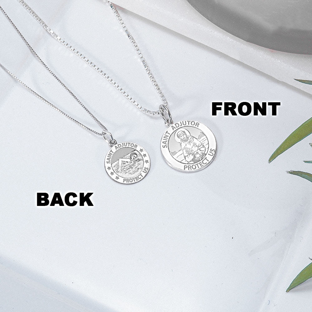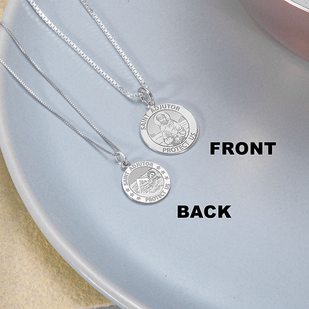All Religious Medals are Customizable. We can change the spelling, your language, names etc, ex: change "Pray for Us" to "Pray For Me". Just let us know in "special instructions"Adjutor (died April 30, 1131) is venerated as a saint by the Catholic Church. He was born near Normandy, France, where he was made a knight in the First Crusade. He is credited to be the patron saint of swimmers, boaters, and drowning victims,[1] and the patron saint of Vernon, France. The stories given for his patronage of boaters vary. Some state that he was captured by Muslims in The Crusade, and escaped persecution by swimming. Additional legends state that it was in fact angels who freed him from his captors, and his association with the seas came when he calmed a whirlpool by throwing Holy water, and the chains of his captivity into it, and signing the cross. In his later life he became a hermit.