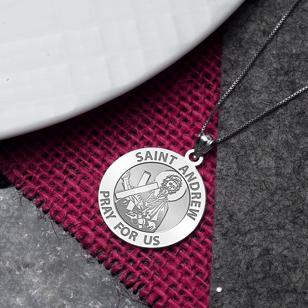 All Religious Medals are Customizable. We can change the spelling, your language, names etc, ex: change "Pray for Us" to "Pray For Me". Just let us know in "special instructions"The New Testament records that St Andrew was a son of Jonah, or John. He was born in Bethsaida on the Sea of Galilee. Both he and his brother Peter were fishermen by trade, hence the tradition that Jesus called them to be his disciples by saying that He will make them "fishers of men." At the beginning of Jesus' public life they occupied the same house at Capernaum. The Gospel of John teaches that Andrew was a disciple of John the Baptist, whose testimony first led him and John the Evangelist to follow Jesus. Andrew at once recognized Jesus as the Messiah, and hastened to introduce him to his brother. Thenceforth the two brothers were disciples of Christ. On a subsequent occasion, prior to the final call to the apostolate, they were called to a closer companionship, and then they left all things to follow Jesus. In the gospels Andrew is referred to as being present on some important occasions as one of the disciples more closely attached to Jesus, but in Acts there is only a bare mention of him. Andrew is said to have been martyred by crucifixion at Patras (Patrae) in Achaea. Though early texts, such as the Acts of Andrew known to Gregory of Tours, describe Andrew bound, not nailed, to a Latin cross of the kind on which Christ was crucified, a tradition grew up that Andrew had been crucified on a cross of the form called Crux decussata (X-shaped cross) and commonly known as "St. Andrew's cross"; this was performed at his own request, as he deemed himself unworthy to be crucified on the same type of cross on which Christ was crucified. "The familiar iconography of his martyrdom, showing the apostle bound to an X-shaped cross, does not seem to have