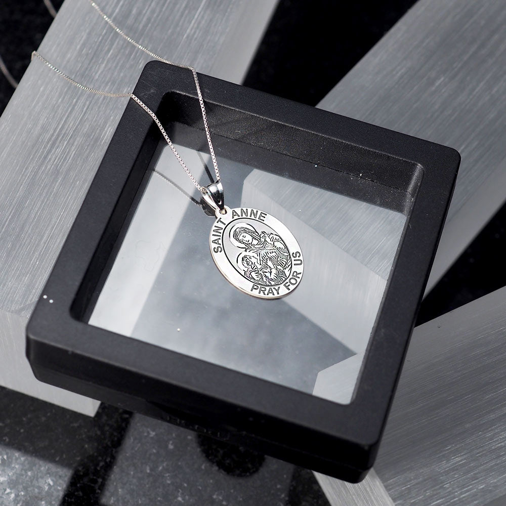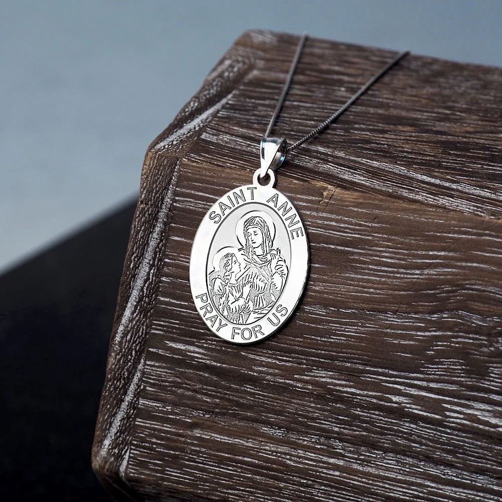 All Religious Medals are Customizable. We can change the spelling, your language, names etc, ex: change "Pray for Us" to "Pray For Me". Just let us know in "special instructions"Saint Anne was the mother of the Virgin Mary. According to the non-canonical Gospel of James, Anne and her husband Joachim, after years of childlessness, were visited by an angel who told them that they would conceive a child. Anne promised to dedicate the child to God's service. Joachim and Anne are believed to have given Mary to the service of the Second Temple when the girl was three years old. Anne is a patron saint of Quebec and Brittany, and patroness of women in labor and miners.
