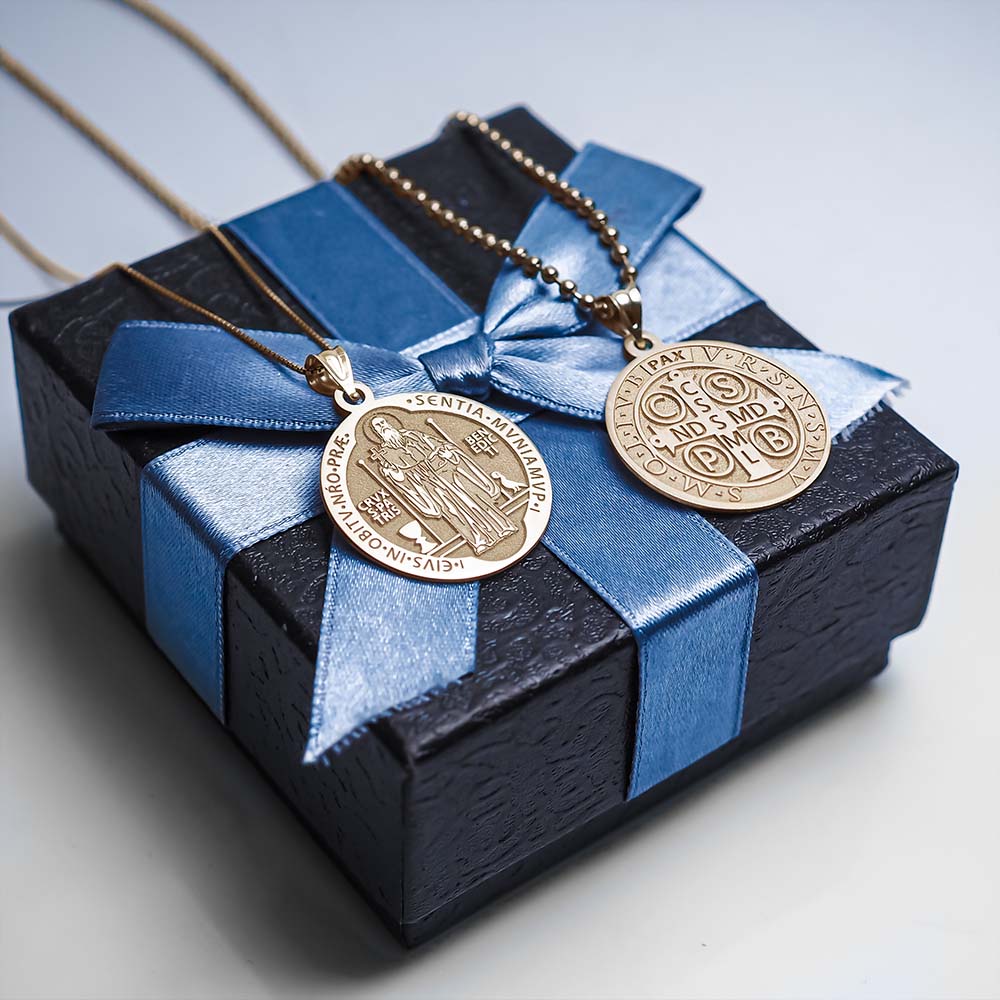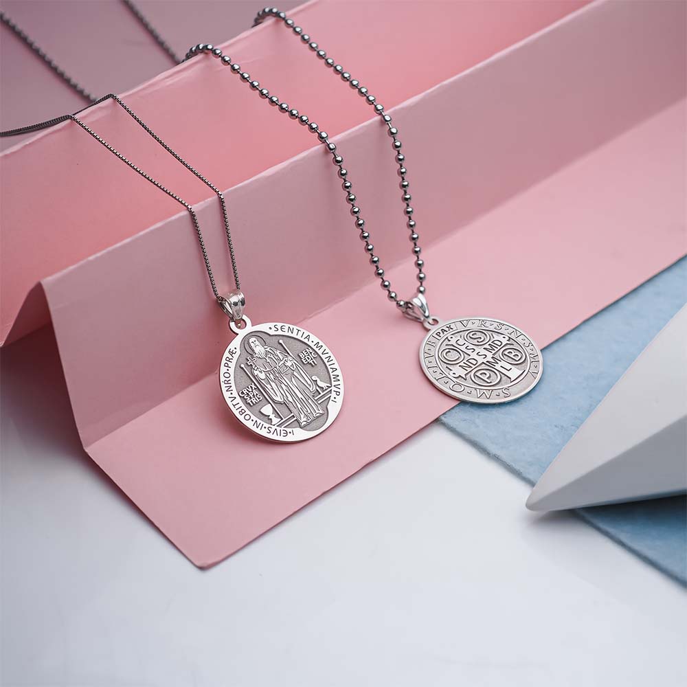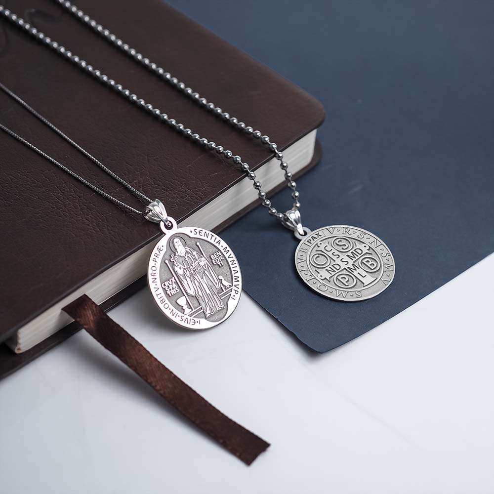 All Religious Medals are Customizable. We can change the spelling, your language, names etc, ex: change "Pray for Us" to "Pray For Me". Just let us know in "special instructions"Saint Benedict of Nursia was a founder of Christian monastic communities and a rule giver for monks living in community. His purpose may be gleaned from his Rule, namely that "Christ may bring us all together to life eternal". The Roman Catholic Church canonized him in 1220. Benedict founded twelve other communities for monks, the best known of which is his first monastery at Monte Cassino in the mountains of southern Italy. There is no evidence that he intended to found also a religious order. The Order of St Benedict is of modern origin and, moreover, not an "order" as commonly understood but merely a confederation of congregations into which the traditionally independent Benedictine abbeys have affiliated themselves for the purpose of representing their mutual interests, without however ceasing any of their autonomy. Benedict's main achievement was a "Rule" containing precepts for his monks, referred to as the Rule of Saint Benedict. St Benedict became one of the most influential religious rules in Western Christendom. For this reason Benedict is often called "the founder of western Christian monasticism".