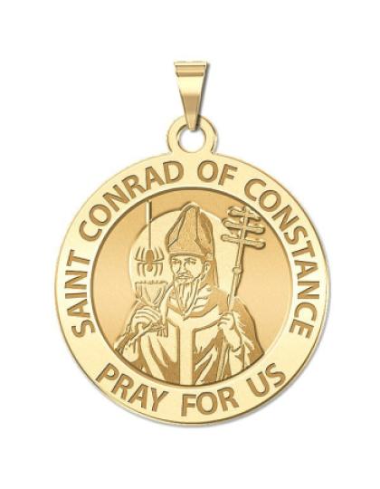 All Religious Medals are Customizable. We can change the spelling, your language, names etc, ex: change "Pray for Us" to "Pray For Me". Just let us know in "special instructions"Conrad was a member of the powerful Welf family, son of Count Heinrich of Altdorf. After an education at the cathedral school in Constance, he became provost of Constance Cathedral and in 934 was made Bishop of Constance. It is counted as one of his achievements that he avoided becoming enmeshed in the politics of the day and reserved his energies for his episcopal duties. He was nevertheless close to Emperor Otto I, whom he accompanied to Italy in 962. Conrad made three pilgrimages to Jerusalem as well as a number to Rome. He founded a number of churches on the episcopal estates and the hospital at Kreuzlingen, named after a portion of the True Cross which Conrad brought back from Jerusalem and presented to it.