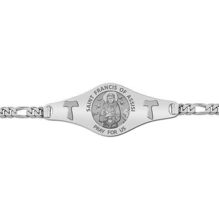 - Comes with a Lobster Claw Clasp. This bracelet is Unisex and can be for a man or woman. 7 Inches is standard for women 8 Inches is standard for men. Mens Plate Size: 1 3/4 Inches Wide x 1/2 Inch Tall Womens Plate Size: 1 Inches Wide x 1/3 Inches Tall Francis of Assisi (Giovanni Francesco Bernardone; born 1181/1182 October 3, 1226) was a friar and the founder of the Order of Friars Minor, more commonly known as the Franciscans. He is known as the patron saint of animals, the environment and Italy, and it is customary for Catholic churches to hold ceremonies honoring animals around his feast day of 4 October. Saint Francis' feast day is observed on October 4. In addition to this feast, a secondary feast is still observed amongst Traditional Roman Catholics and Franciscans world-wide in honor of the stigmata received by St Francis celebrated on September 17 called "The Impression of the Stigmata of St Francis, Confessor" (see the General Roman Calendar as in 1954, the General Roman Calendar of Pope Pius XII, and the General Roman Calendar of 1962).