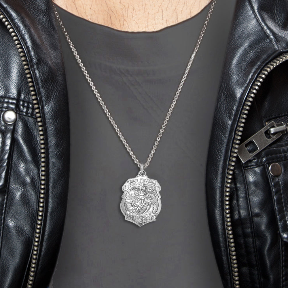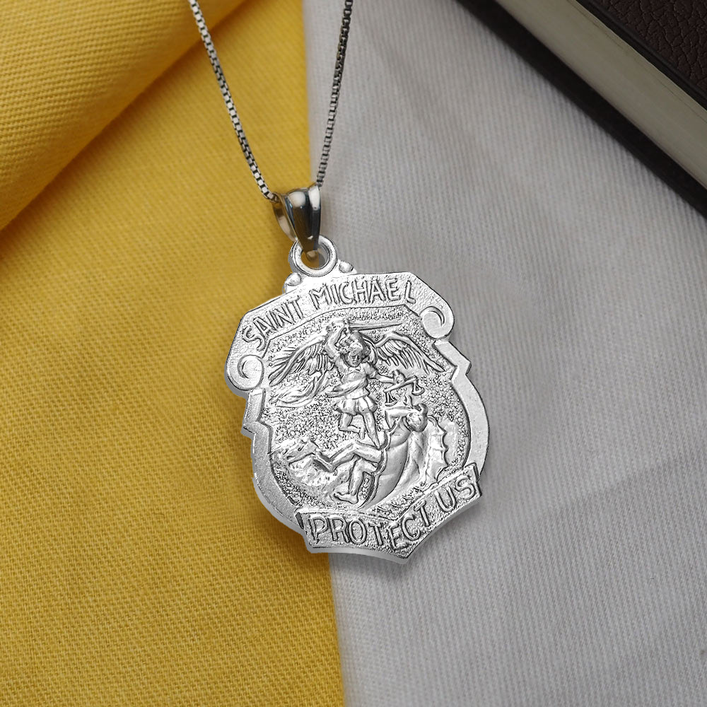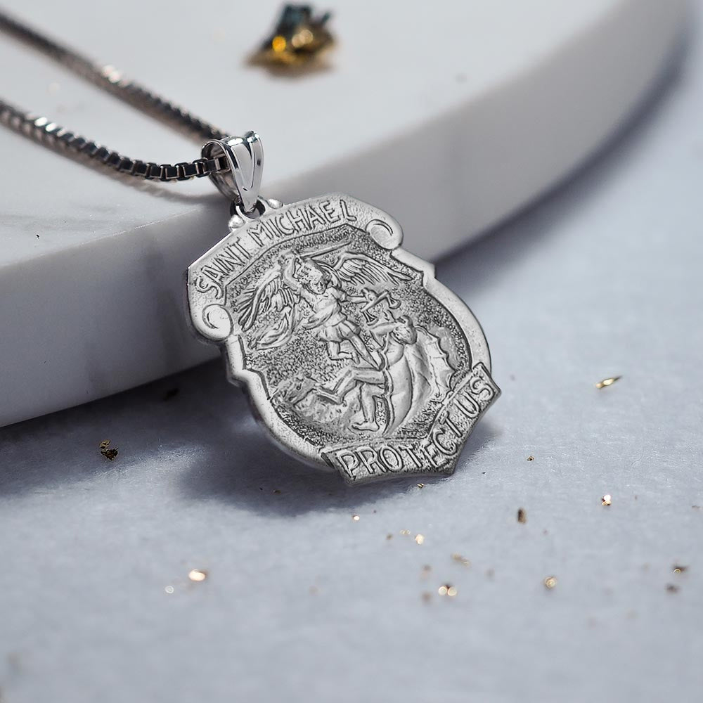 - This Solid 14K Gold Saint Michael medal is the patron Saint of Policemen. His name is Hebrew for "who is like God?" He is represented in the act of defeating the devil.