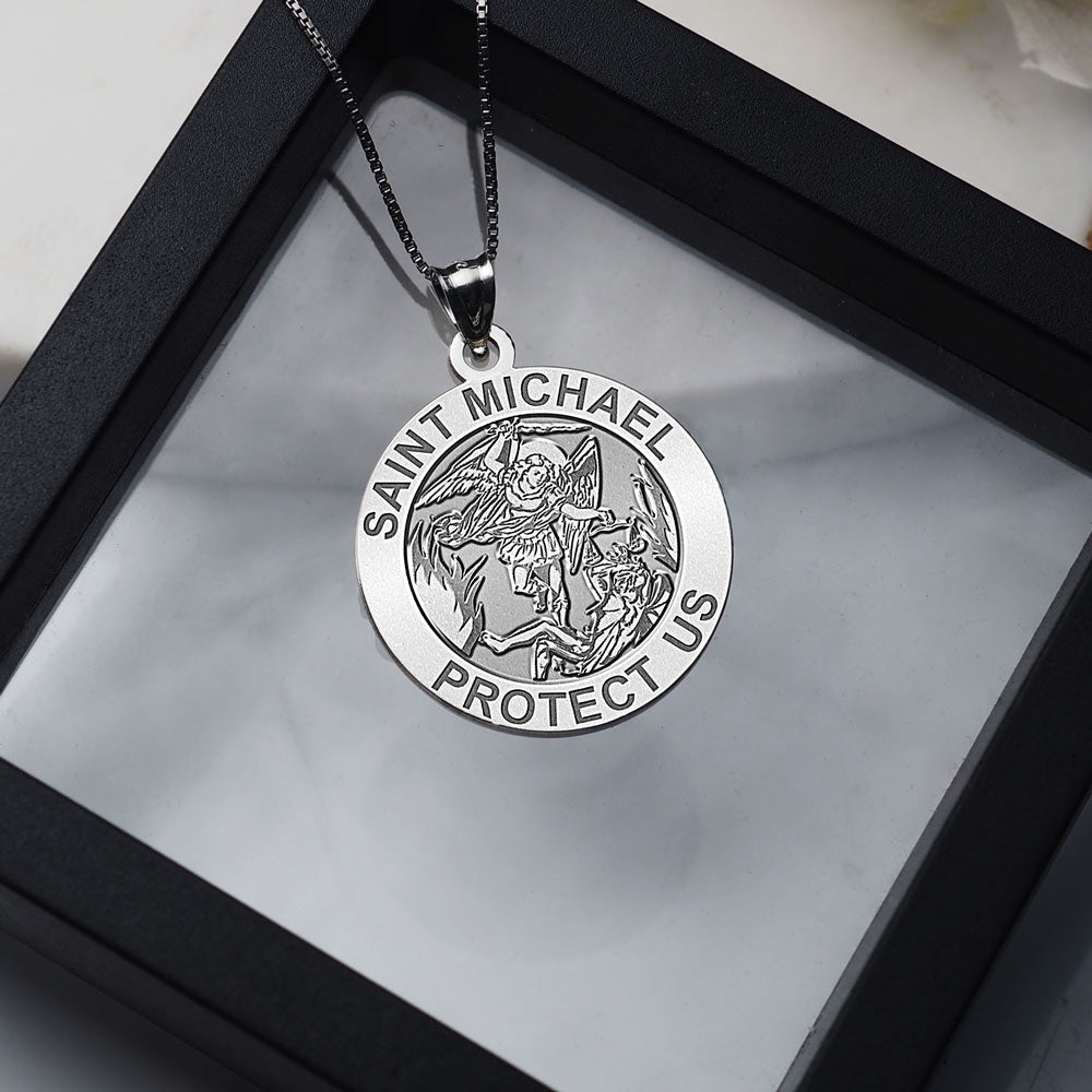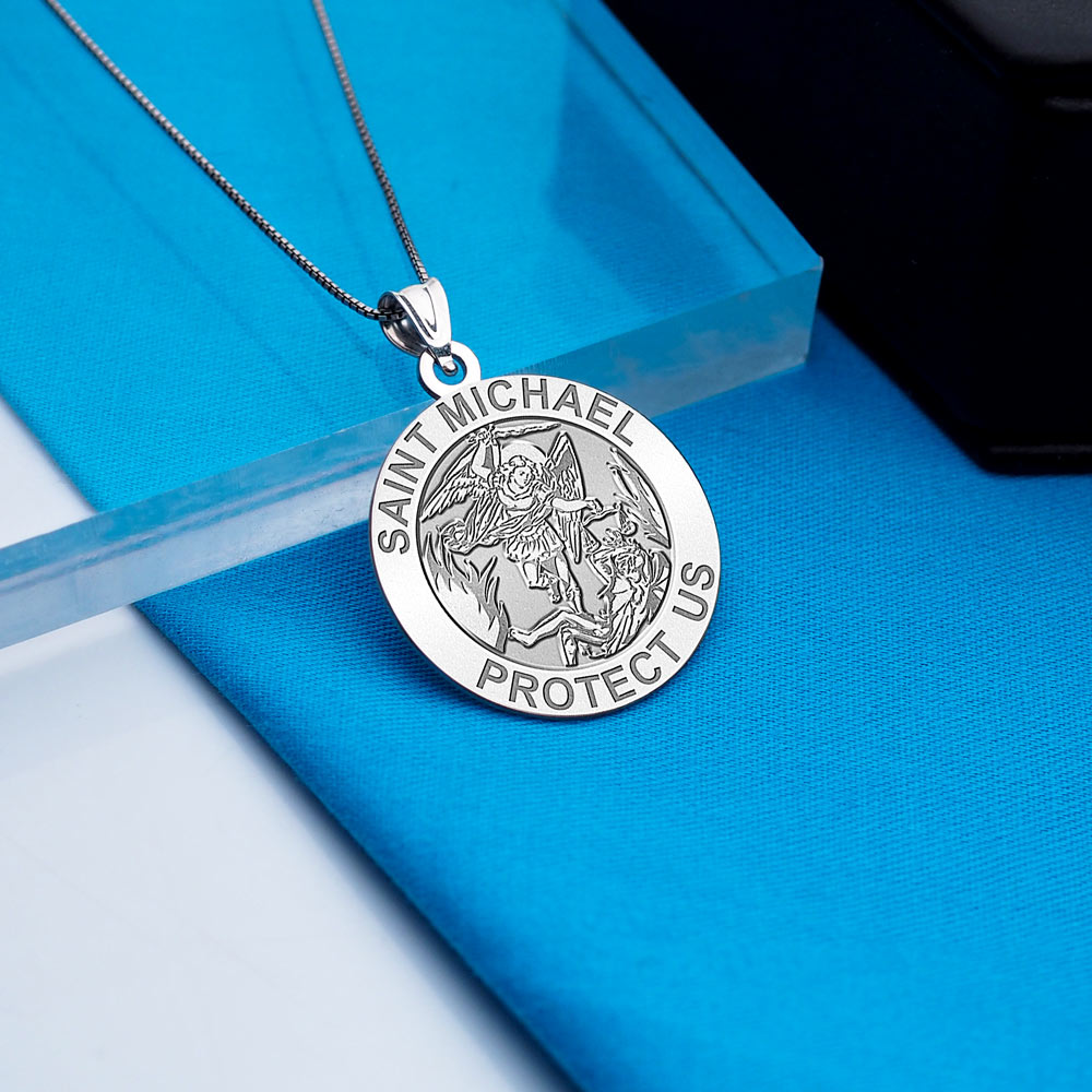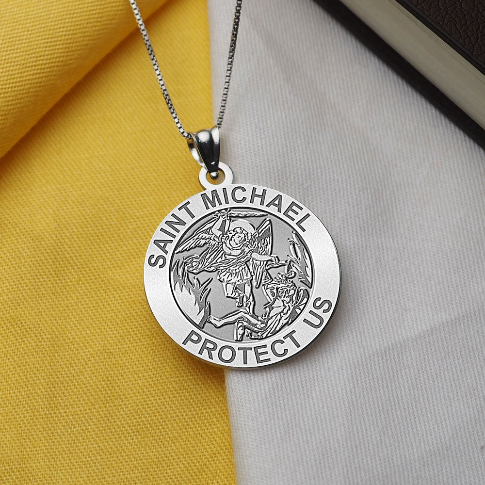 All Religious Medals are Customizable. We can change the spelling, your language, names etc, ex: change "Pray for Us" to "Pray For Me". Just let us know in "special instructions"Michael is the Archangel mentioned in the Book of Revelation 12:7. In the Old Testament Michael is mentioned by name in the Persian context of the Book of Daniel. He is generally presented as the field commander of the Army of God. There Michael appears as "one of the chief princes" (Daniel 10:13) Michael who in Daniel's vision comes to the Lord's aid in his contest with the leader of Persia, and is also described there as the advocate of Israel and "great prince (or leader) who stands up for the children of your (Daniel's) people" (Daniel 10:21, 12:1). The Talmudic tradition rendered his name as meaning "who is like El ("God"but literally "El's Likeness")" (compare the late prophet Micah), but according to Rabbi Simeon ben Lakish (AD 230270), all the specific names for the angels were brought back by the Jews from Babylon, and many modern commentators would agree. The name title "Archangel" translated into the English language means: 'highest messenger'. St Michael is also considered in many Christian circles as the patron saint of the warrior. Police officers and soldiers, particularly paratroopers, regard him as their patron saint. Roman Catholics refer to him as Saint Michael the Archangel and also simply as Saint Michael ("Saint" is a title meaning "holy", and is not meant to indicate that Michael is a human soul in heaven). Orthodox Christians refer to him as the Taxiarch ("Commander") Archangel Michael or simply Archangel Michael.