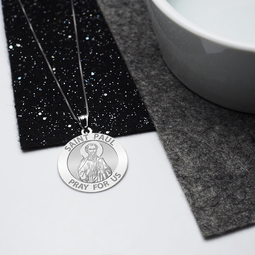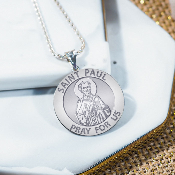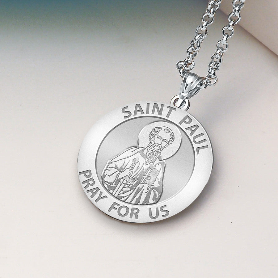All Religious Medals are Customizable. We can change the spelling, your language, names etc, ex: change "Pray for Us" to "Pray For Me". Just let us know in "special instructions"Paul the apostle was, together with Saint Peter and James the Just,the most notable of early Christian missionaries. Unlike the Twelve Apostles, there is no indication that Paul ever met Jesus before the latter's crucifixion. According to The Acts of the Apostles, his conversion took place ('conversion' not in the sense of changing religious identity since the early Christians were viewed as members of a sect of Judaism not as members of a different religion, but in the sense of metanoia, also see religious conversion) as he was traveling the road to Damascus, he experienced a vision of the resurrected Jesus. He was temporarily blinded. Paul asserts that he received the Gospel not from man, but by "the revelation of Jesus Christ". Fourteen epistles in the New Testament are traditionally attributed to Paul, though in some cases the authorship is disputed. Paul had often employed an amanuensis, only occasionally writing himself. As a sign of authenticity, the writers of these epistles sometimes employ a passage presented as being in Paul's own handwriting. These epistles were circulated within the Christian community. They were prominent in the first New Testament canon ever proposed (by Marcion), and they were eventually included in the orthodox Christian canon of Scripture. They are believed to be the earliest-written books of the New Testament. Paul's influence on Christian thinking arguably has been more significant than any other New Testament author. His influence on the main strands of Christian thought has been demonstrable: from St. Augustine of Hippo to the controversies between Gottschalk and Hincmar of Reims; between Thomism and Molinism;