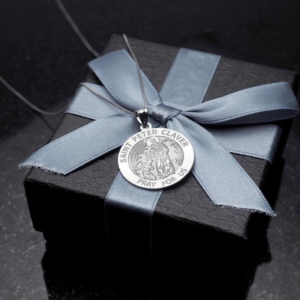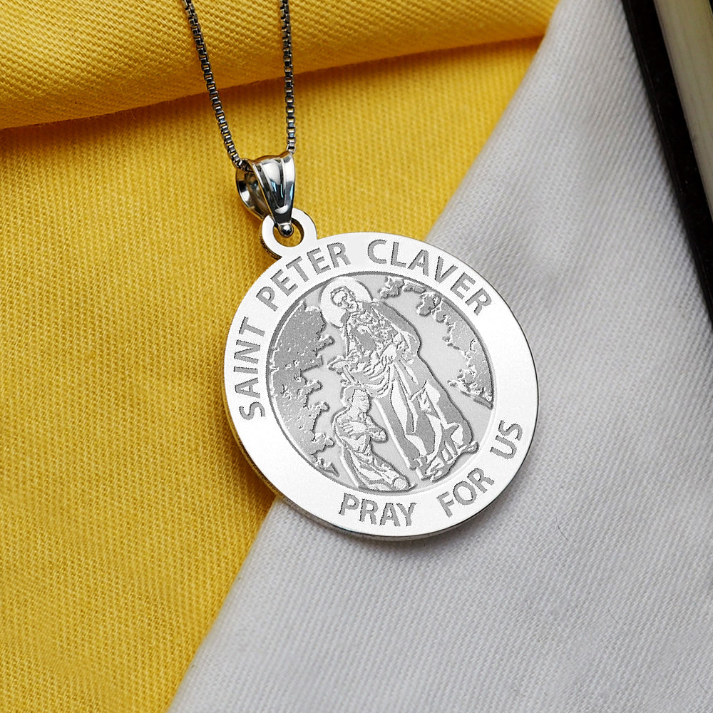 All Religious Medals are Customizable. We can change the spelling, your language, names etc, ex: change "Pray for Us" to "Pray For Me". Just let us know in "special instructions"Saint Peter Claver (Spanish: San Pedro Claver Corber) (26 June 1580 8 September 1654) was a Jesuit who, due to his life and work, became the patron saint of slaves, of Colombia and of African Americans.