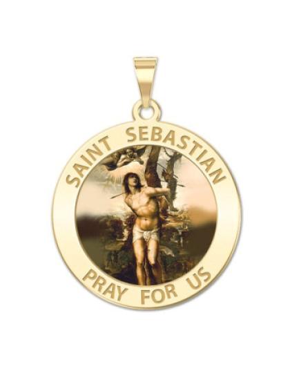 All Religious Medals are Customizable. We can change the spelling, your language, names etc, ex: change "Pray for Us" to "Pray For Me". Just let us know in "special instructions"Color Laser is a patent pending process, color is guaranteed to last foreverColor Medals can be worn in the pool, shower, etc. without affecting the image. We guarantee it.Saint Sebastian was a Christian saint and martyr, who is said to have been killed while the Roman emperor Diocletian engaged in the persecution of Christians in the 3rd century. He is commonly depicted in art and literature tied to a post and shot with arrows just like on this medal. He is patron saint to Soldiers, plagues, arrows, athletes and unofficially youth.