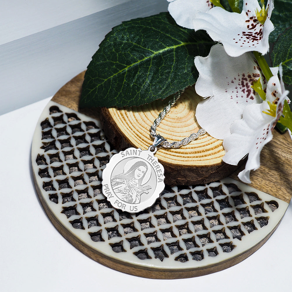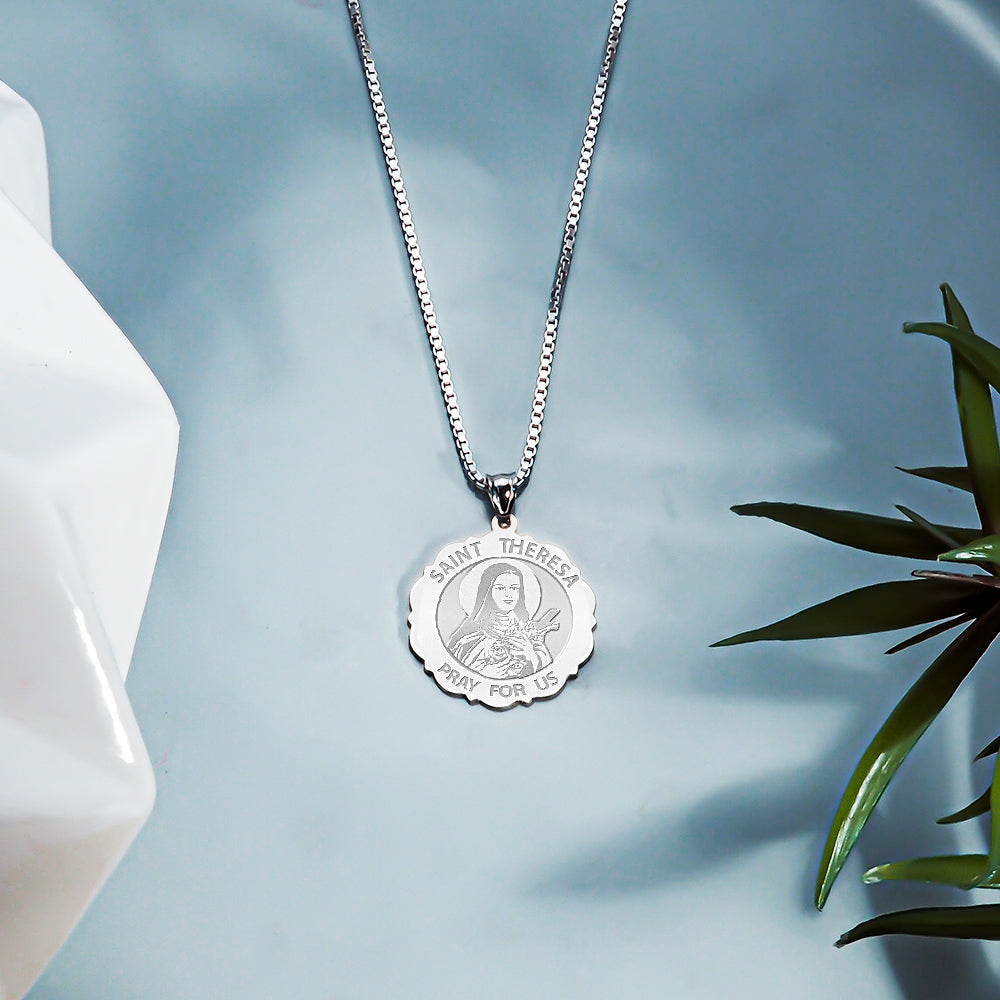 Saint Theresa Scalloped Round Medal