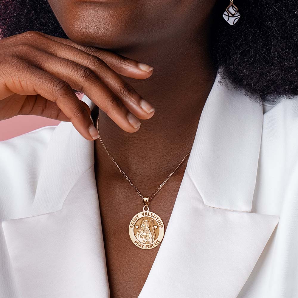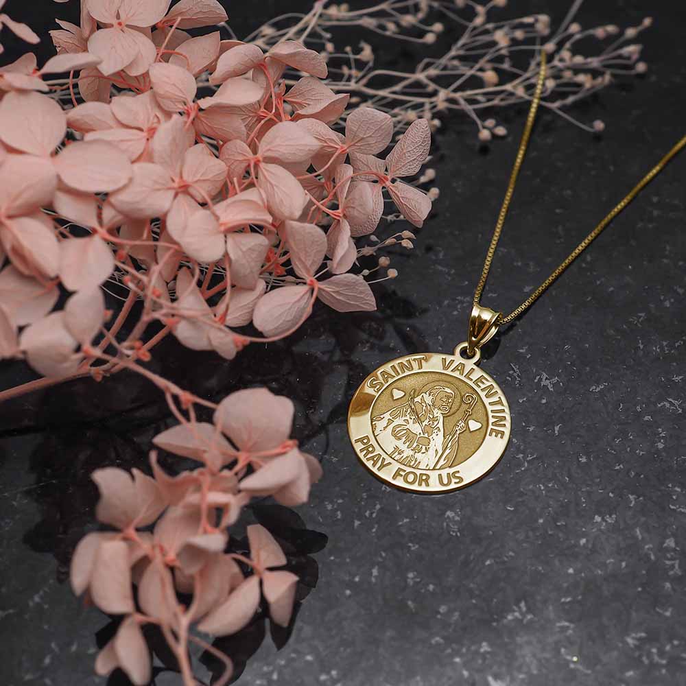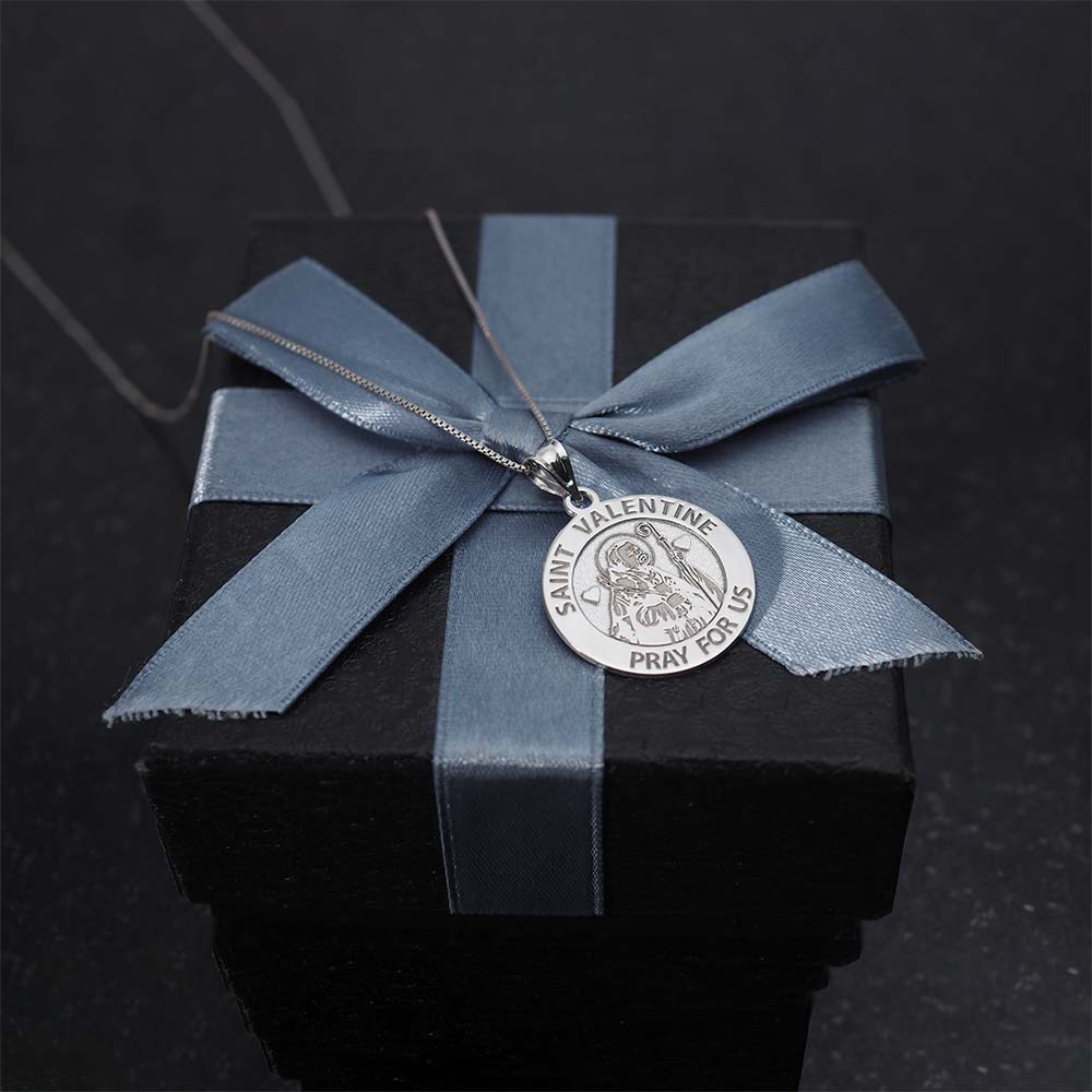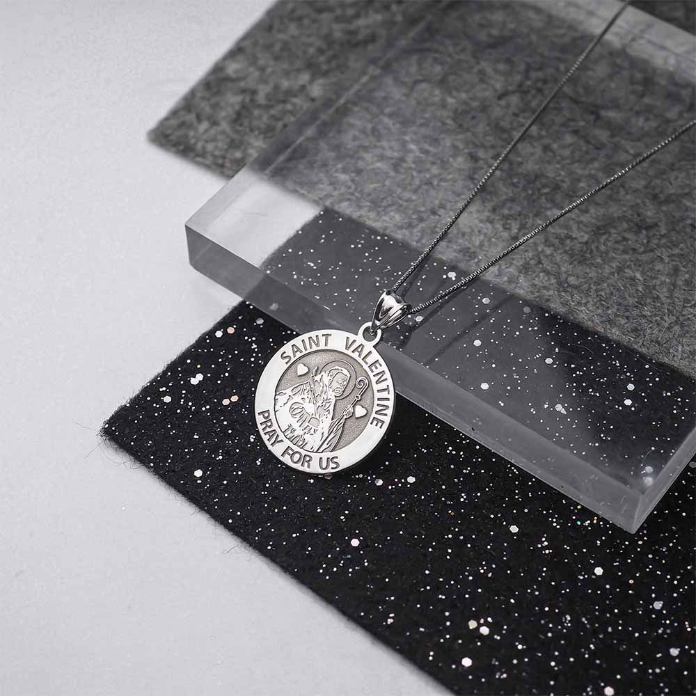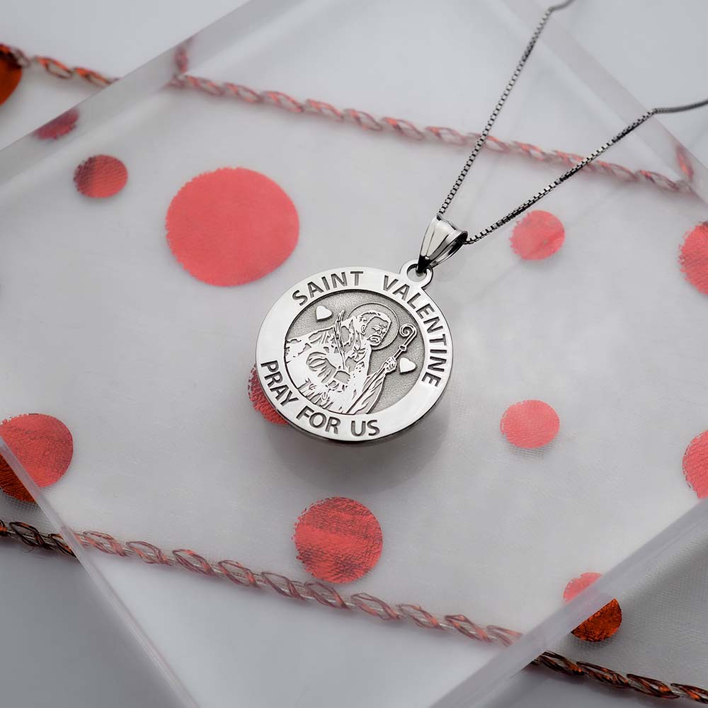 All Religious Medals are Customizable. We can change the spelling, your language, names etc, ex: change "Pray for Us" to "Pray For Me". Just let us know in "special instructions"Saint Valentine (in Latin, Valentinus) is the name of several martyred saints of ancient Rome. The name "Valentine", derived from valens (worthy), was popular in late antiquity. Of the Saint Valentine whose feast is on February 14, nothing is known except his name and that he was buried at the Via Flaminia north of Rome on February 14. It is even uncertain whether the feast of that day celebrates only one saint or more saints of the same name. For this reason this liturgical commemoration was not kept in the Roman Catholic calendar of saints for universal liturgical veneration as revised in 1969. But "Martyr Valentinus the Presbyter and those with him at Rome" remains in the list of saints proposed for veneration by all Catholics Professor Oruch has made the case] that the traditions associated with "Valentine's Day", documented in Geoffrey Chaucer's Parliament of Foules, and set in the fictional context of an old tradition, had no such tradition before Chaucer. He argues that the speculative explanation of sentimental customs, posing as historical fact, had their origins among eighteenth-century antiquaries, notably Alban Butler, the author of Butler's Lives of Saints, and have been perpetuated even by respectable modern scholars. In the French fourteenth-century manuscript illumination from a Vies des Saints[21] (illustration above), Saint Valentine, bishop of Terni, oversees the construction of his basilica at Terni; there is no suggestion here yet that the bishop was a patron of lovers.