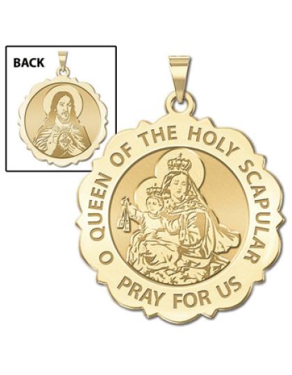 The Front of the Medal features the image of Our Lady of Mt. Carmel and on the reverse side features the Sacred Heart of Jesus. According to a pious tradition the Blessed Virgin appeared to St. Simon Stock at Cambridge, England, on Sunday, 16 July, 1251. In answer to his appeal for help for his oppressed order, she appeared to him with a scapular in her hand and said: "Take, beloved son this scapular of thy order as a badge of my confraternity and for thee and all Carmelites a special sign of grace; whoever dies in this garment, will not suffer everlasting fire. It is the sign of salvation, a safeguard in dangers, a pledge of peace and of the covenant". This tradition appears in precise form for the first time in 1642, when the words of the Blessed Virgin were given in a circular of St. Simon Stock which he is said to have dictated to Peter Boyle, his secretary and confessor. It is widely believed that its general content remains a reliable pious tradition; in other words, that St. Simon Stock was given certain supernatural assurances: The special protection of the Blessed Virgin for his whole order and for all those wearing the Carmelite habit Special aid, especially in the hour of death, to those wearing the habit in her honour throughout life, so that they should be preserved from hell. Indirectly, this promise is extended to all who from devotion to the Mother of God should wear her habit or badge and be thus as if it were affiliated to the Carmelite Order.
