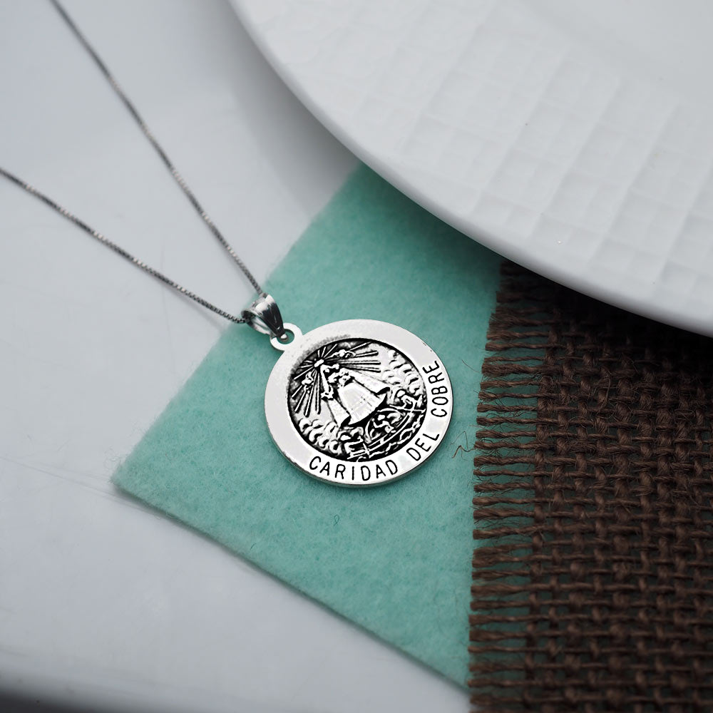 - This 14K Solid Gold Caridad del Cobre medal is Our Lady of Charity as she is known and loved by the people of Cuba, recalls the time she saved three men during a storm. She is Cuba's Patron Saint.