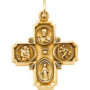 - The 4 way cross features The Sacred Heart if Jesus at the top, Miraculous Medal front at the bottom, Saint Joseph to the left, and Saint Christopher at the right. With Mary's heart in the middle. THIS MEDAL IS ONE SIDED ONLY