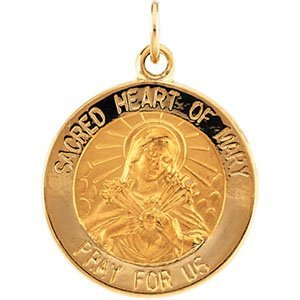 - This Sacred Heart of Mary medal is in all 14K Solid Yellow Gold.