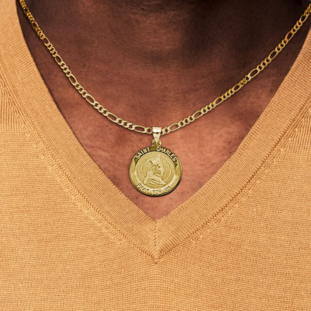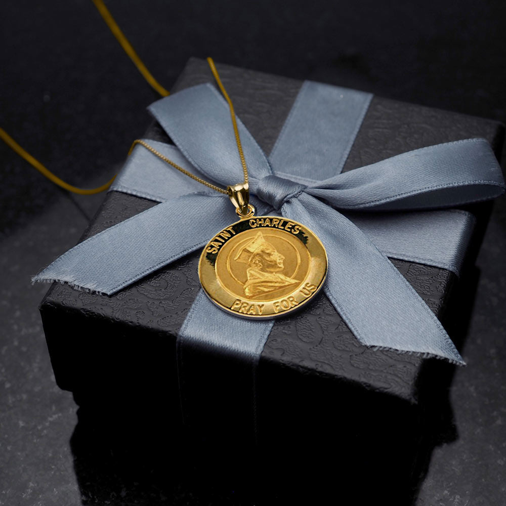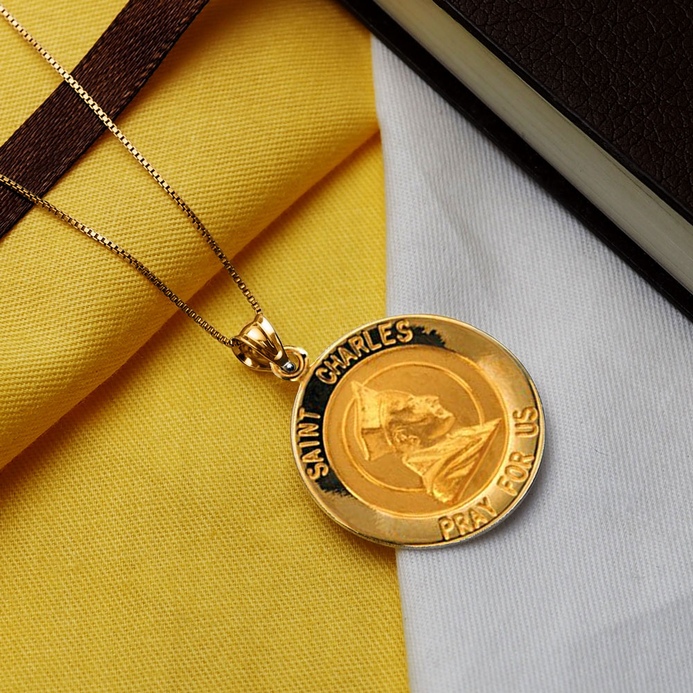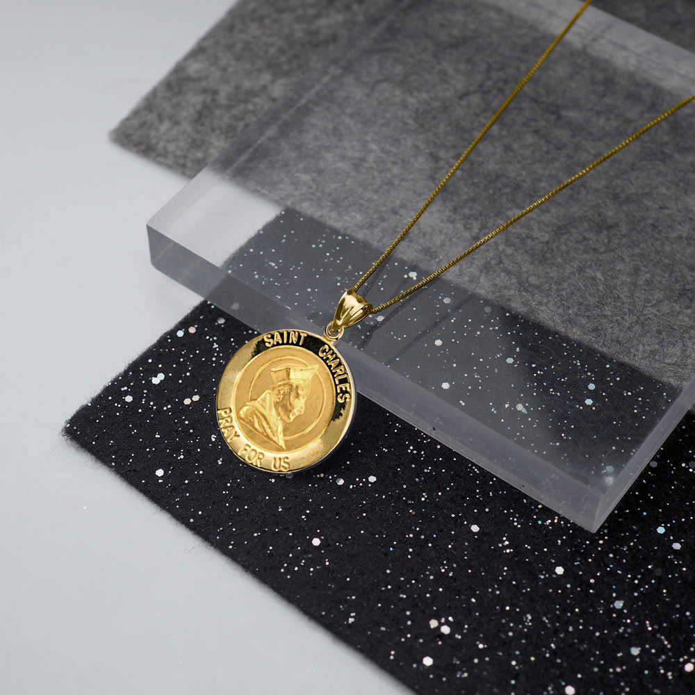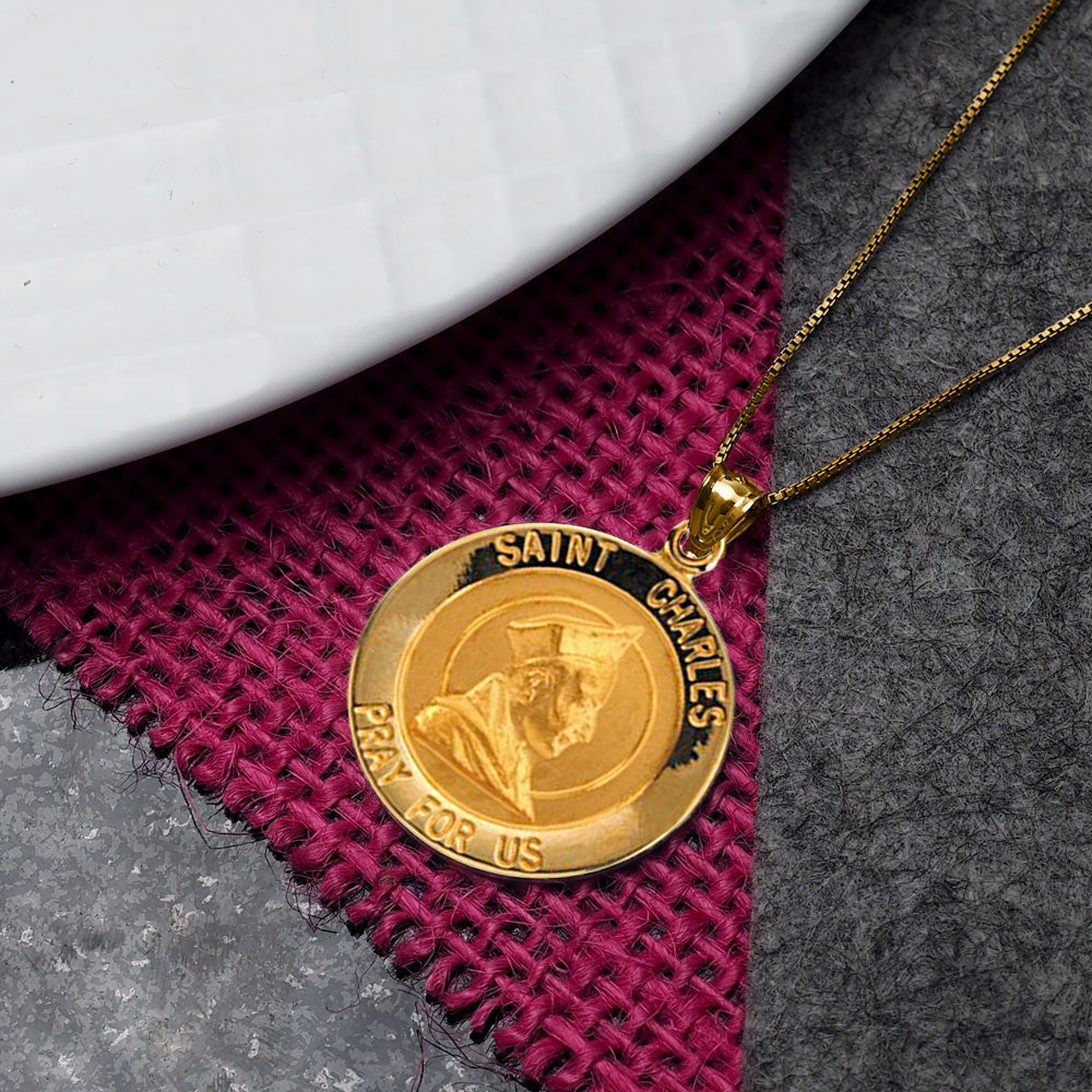 - This 14K Solid Gold medal is of Saint Charles. St. Charles is the patron saint of catechists and seminarians.