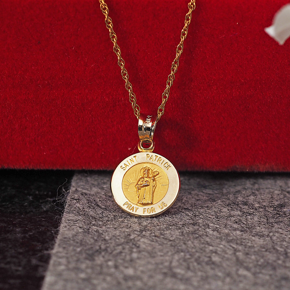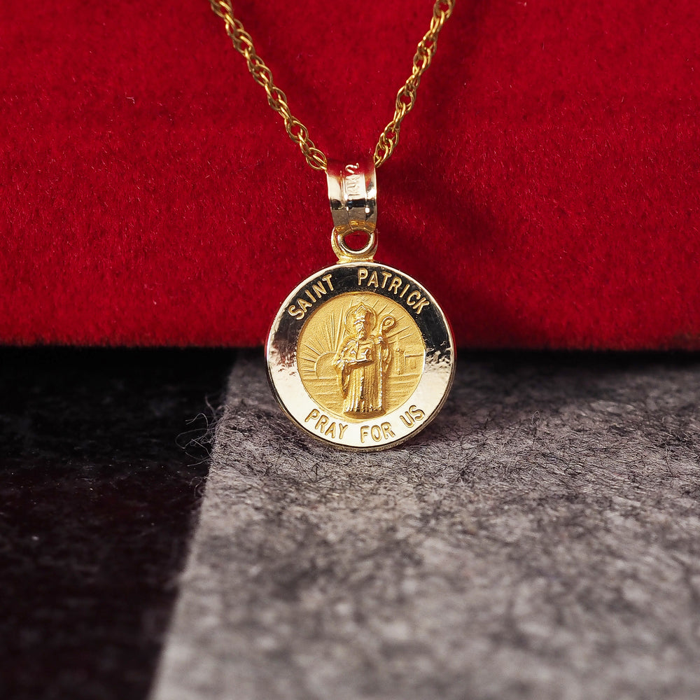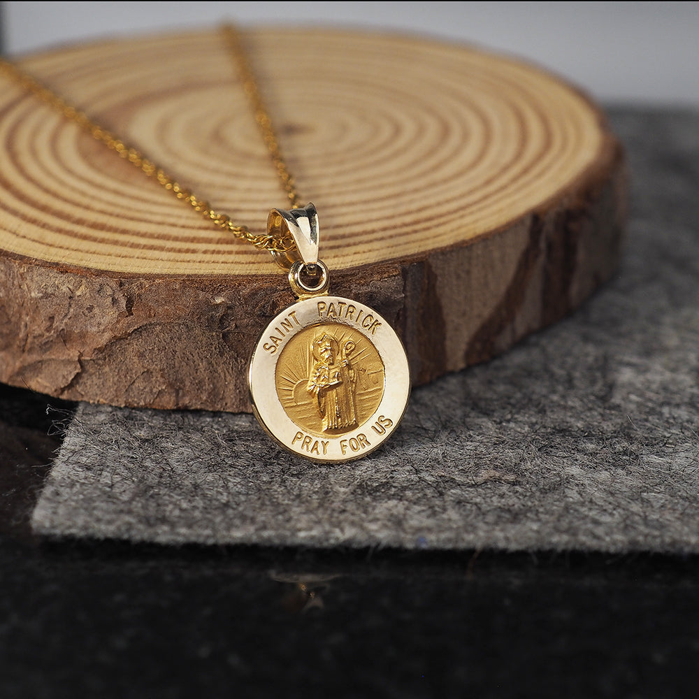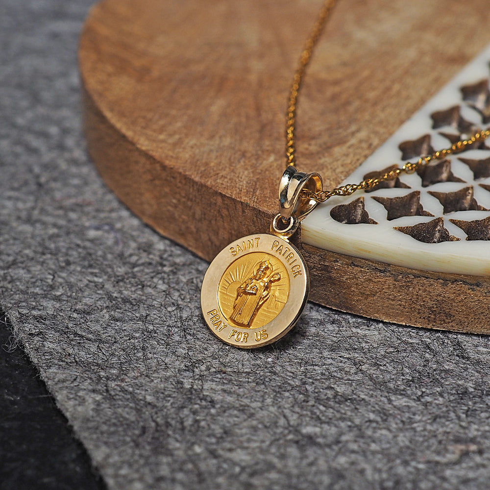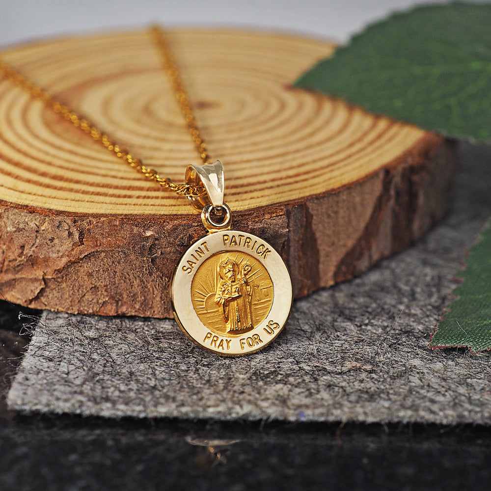 - This 14K Solid Gold Saint Patrick Medal is popular with the Irish. Saint Patrick got rid of all the Snakes in Ireland. Saint Patrick Day is celebrated on March 17th.