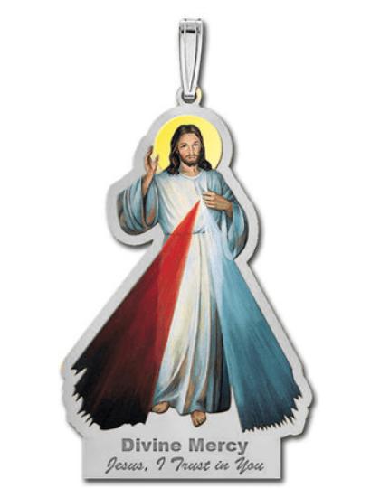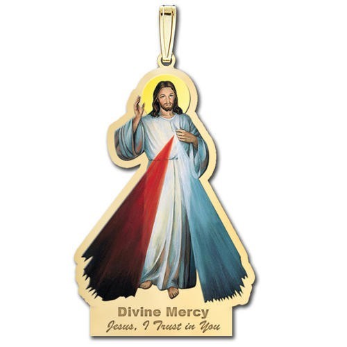 All Religious Medals are Customizable. We can change the spelling, your language, names etc, ex: change "Pray for Us" to "Pray For Me". Just let us know in "special instructions"Color Laser is a patent pending process, color is guaranteed to last foreverColor Medals can be worn in the pool, shower, etc. without affecting the image. We guarantee it.The front of the medal features the lord Jesus Christ and the back inscribes the words "Jesus I Trust In You." The Divine Mercy is a Christian devotion focused on the mercy of God and its power, particularly as a form of thanksgiving and entrusting of oneself to God's mercy. The devotion as known today can be traced to Polish nun and canonized saint, Sister Faustyna Kowalska, known as the "Apostle of Mercy", who lived from 1905-1938. It is known that anyone who seeks God's mercy will not be turned away (Matthew 7:7). "Jesus I Trust In You" are the words inscribed on a picture that Faustina had said was to be made at the request of Jesus himself through the inner speakings of the Lord to Faustina. In 2000, Pope John Paul II officially instituted the Feast of the Divine Mercy universally for the Catholic Church on the same day that he also canonized St. Faustina.