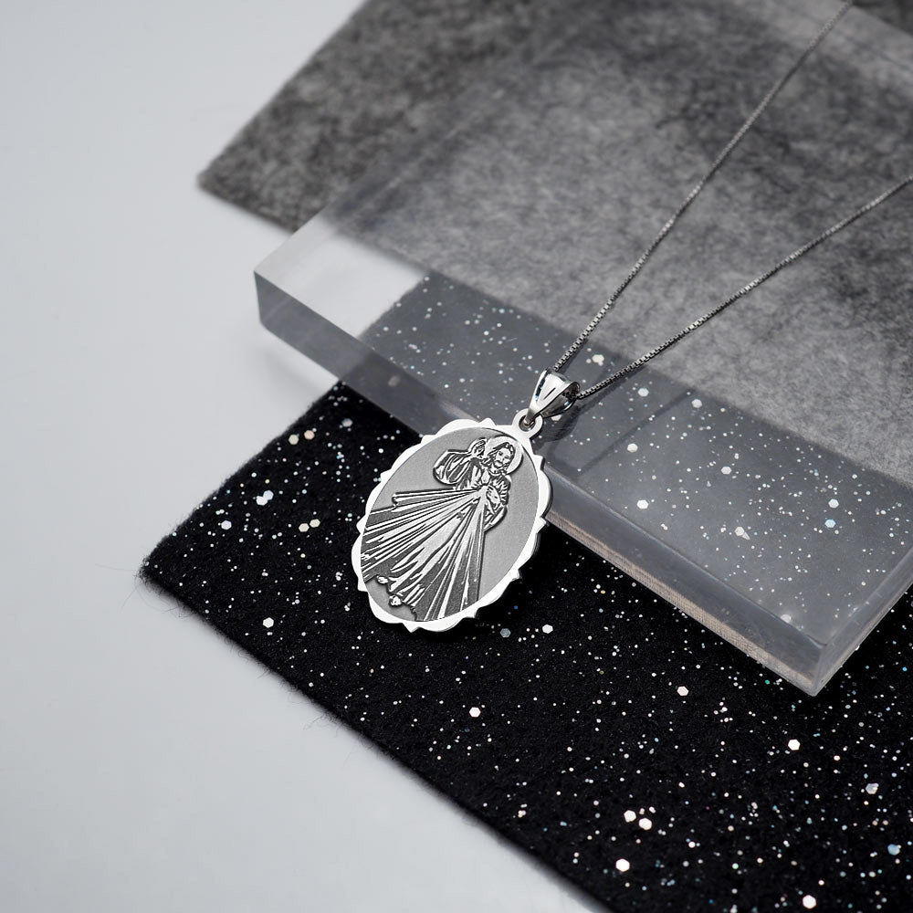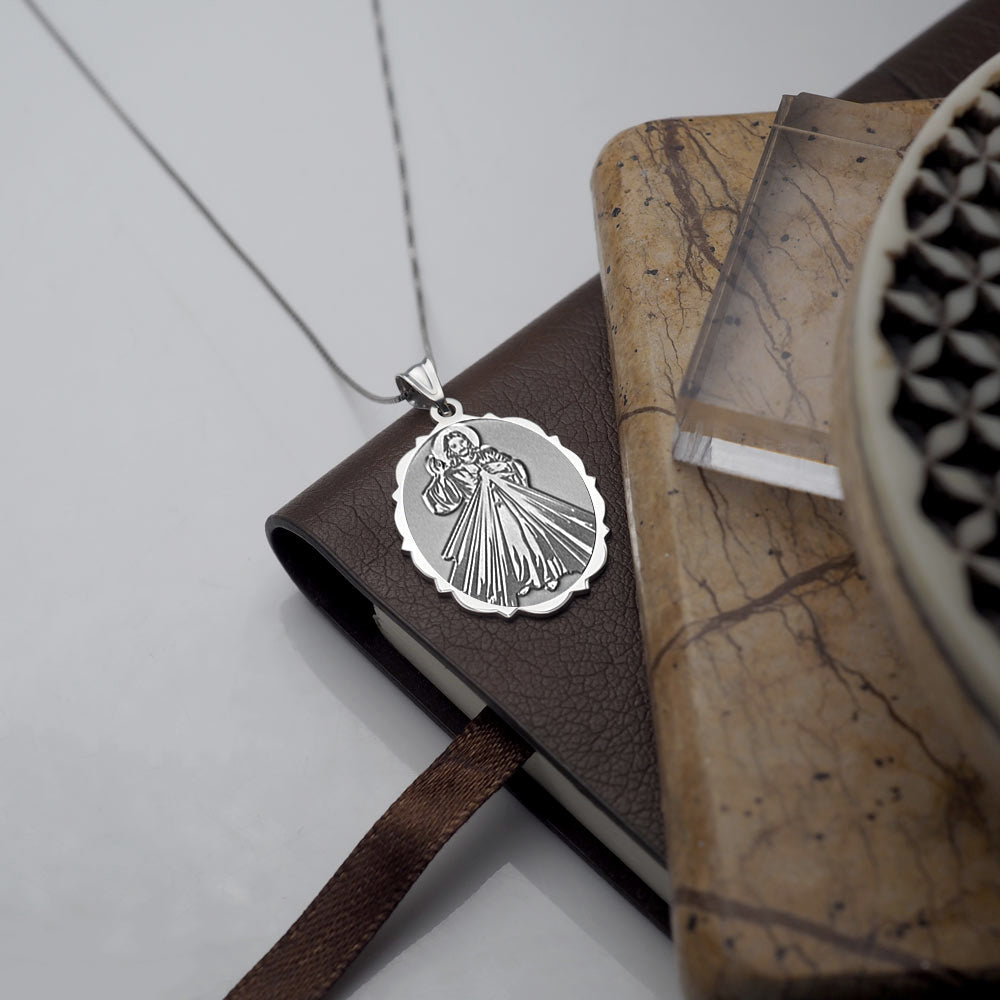 All Religious Medals are Customizable. We can change the spelling, your language, names etc, ex: change "Pray for Us" to "Pray For Me". Just let us know in "special instructions"The front of the medal features the lord Jesus Christ and the back inscribes the words "Jesus I Trust In You." The Divine Mercy is a Christian devotion focused on the mercy of God and its power, particularly as a form of thanksgiving and entrusting of oneself to God's mercy. The devotion as known today can be traced to Polish nun and canonized saint, Sister Faustyna Kowalska, known as the "Apostle of Mercy", who lived from 1905-1938. It is known that anyone who seeks God's mercy will not be turned away (Matthew 7:7). "Jesus I Trust In You" are the words inscribed on a picture that Faustina had said was to be made at the request of Jesus himself through the inner speakings of the Lord to Faustina. In 2000, Pope John Paul II officially instituted the Feast of the Divine Mercy universally for the Catholic Church on the same day that he also canonized St. Faustina.