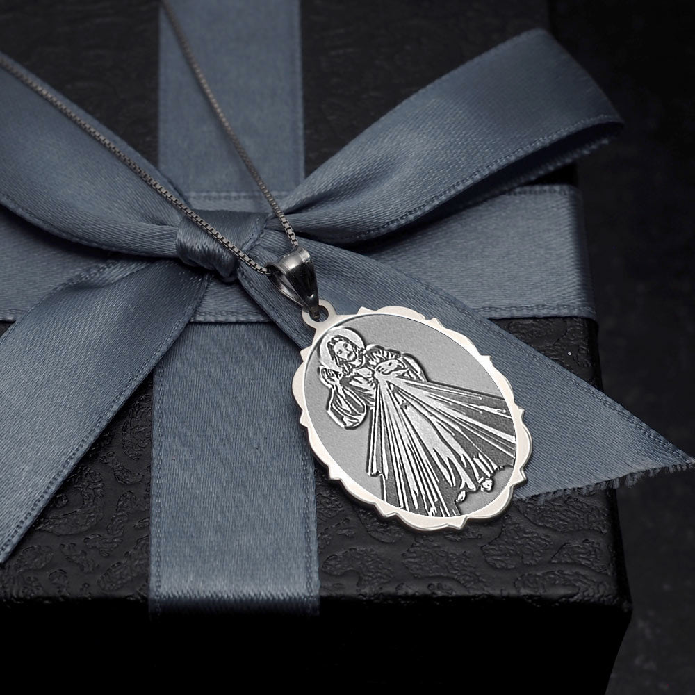 Divine Mercy Scalloped Oval Medal