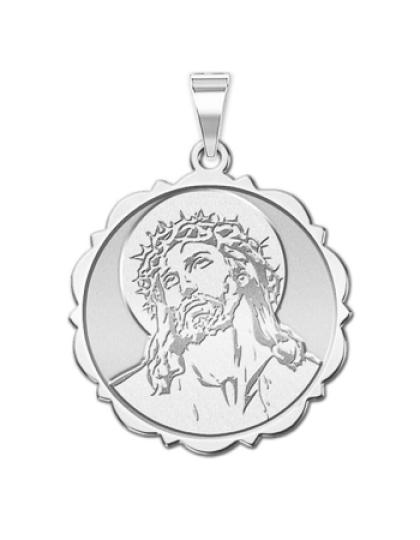 All Religious Medals are Customizable. We can change the spelling, your language, names etc, ex: change "Pray for Us" to "Pray For Me". Just let us know in "special instructions""Ecce Homo" are the Latin words used by Pontius Pilate in the Vulgate translation of the Gospel of John (19:5), when he presented a scourged Jesus Christ, bound and crowned with thorns, to a hostile crowd shortly before his Crucifixion. The original Greek is (Idou ho Anthrpos). The King James Version translates the phrase into English as Behold the Man. The scene is a very popular subject in Christian art, and Ecce Homo is commonly used as a title for any artistic work that depicts the scene.