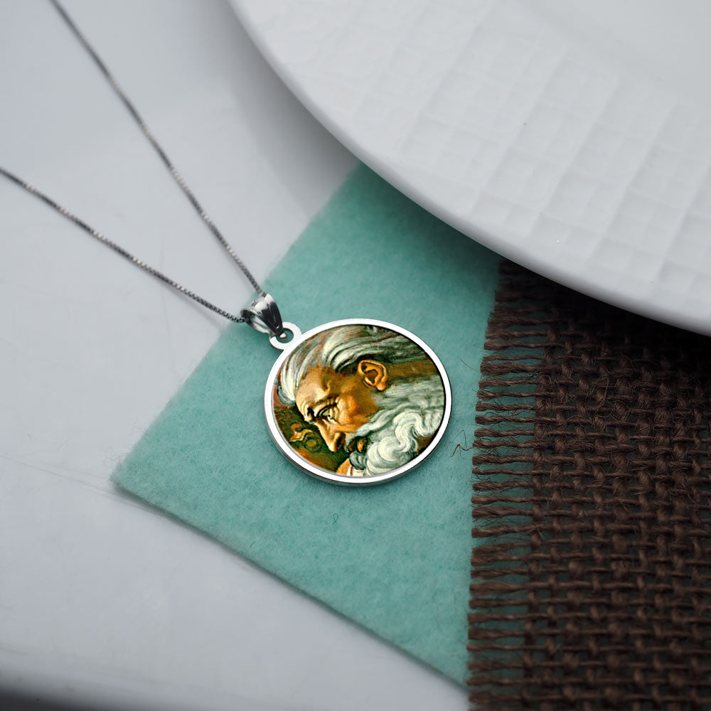 All Religious Medals are Customizable. We can change the spelling, your language, names etc, ex: change "Pray for Us" to "Pray For Me". Just let us know in "special instructions"Color Laser is a patent pending process, color is guaranteed to last foreverColor Medals can be worn in the pool, shower, etc. without affecting the image. We guarantee it.In many religions, God is given the title and attributions of Father. In many forms of polytheism, the highest god has been conceived as a "father of gods and of men". In the Israelite religion and modern Judaism, God is called Father because he is the creator, law-giver, and protector. In Christianity, God is called Father for the same reasons, but especially because of the mystery of the Father-Son relationship revealed by Jesus Christ. In general, the name of Father applied to deity signifies that he is the origin of what is subject to him, a supreme and powerful authority, a patriarch, and protector. The Image is based on a profile close-up of God from the iconic Michelangelo Buonarroti's Sistine Chapel painting of "The Creation of Adam"