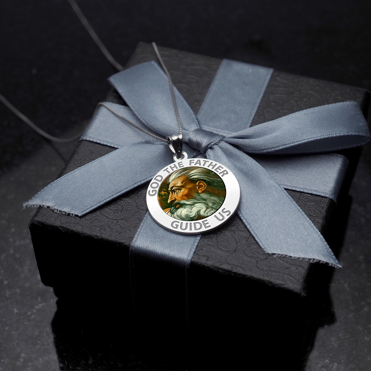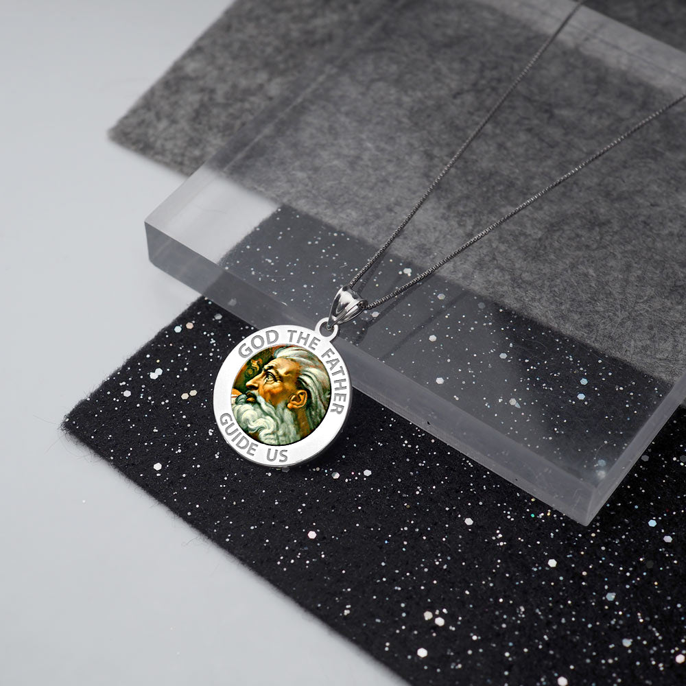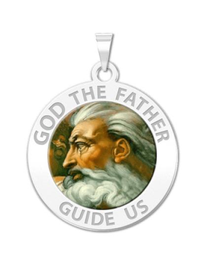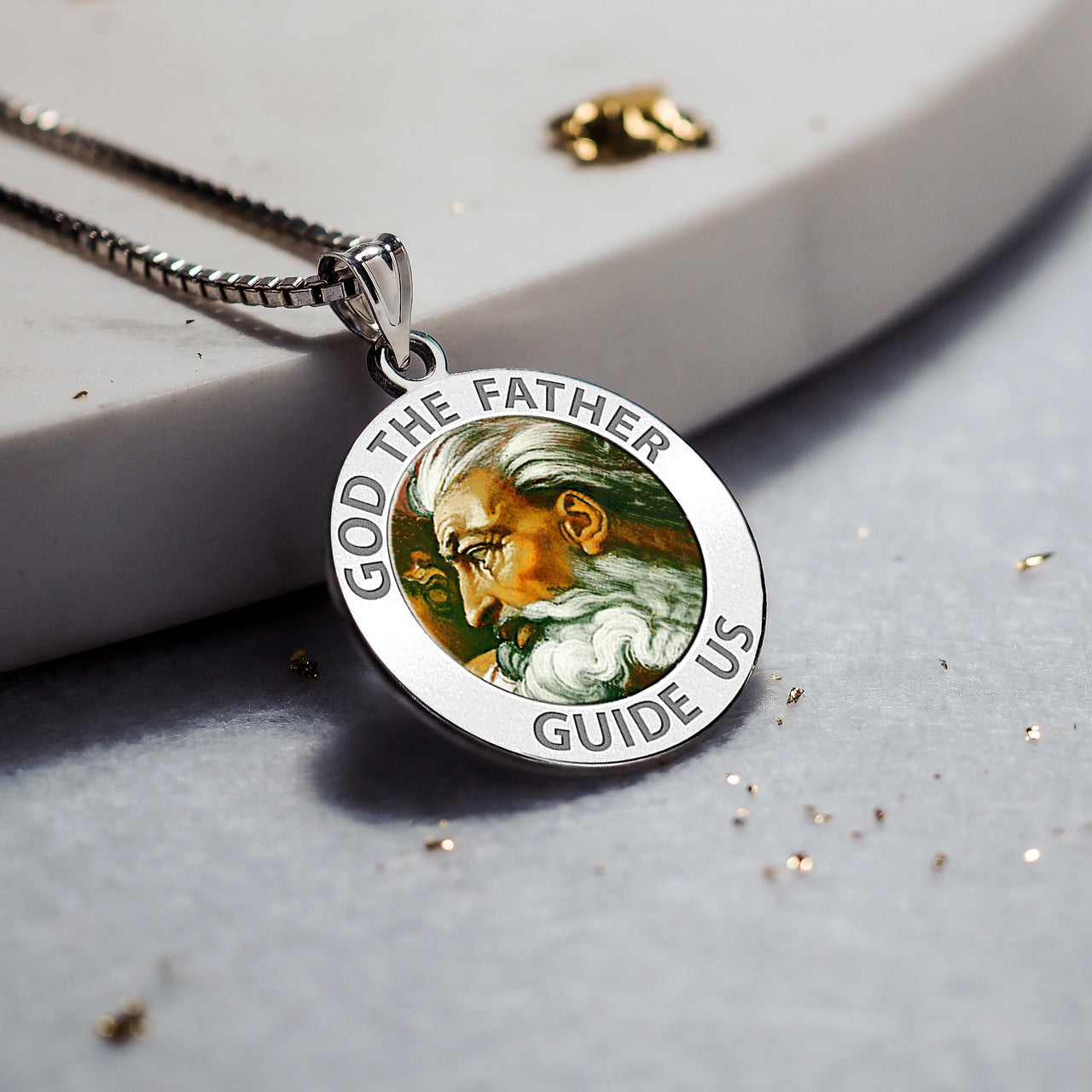 All Religious Medals are Customizable. We can change the spelling, your language, names etc, ex: change "Pray for Us" to "Pray For Me". Just let us know in "special instructions"Color Laser is a patent pending process, color is guaranteed to last foreverColor Medals can be worn in the pool, shower, etc. without affecting the image. We guarantee it.In many religions, God is given the title and attributions of Father. In many forms of polytheism, the highest god has been conceived as a "father of gods and of men". In the Israelite religion and modern Judaism, God is called Father because he is the creator, law-giver, and protector. In Christianity, God is called Father for the same reasons, but especially because of the mystery of the Father-Son relationship revealed by Jesus Christ. In general, the name of Father applied to deity signifies that he is the origin of what is subject to him, a supreme and powerful authority, a patriarch, and protector. The Image is based on a profile close-up of God from the iconic Michelangelo Buonarroti's Sistine Chapel painting of "The Creation of Adam"