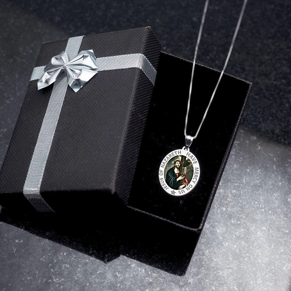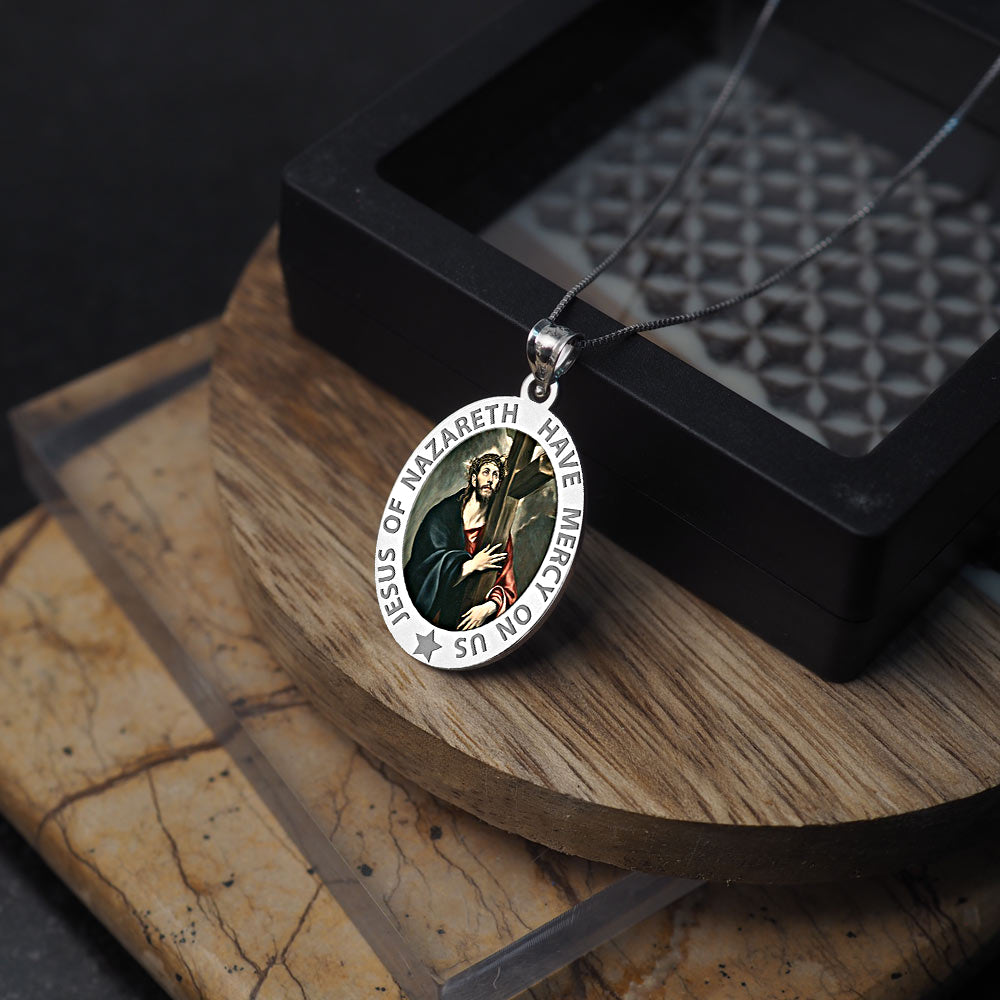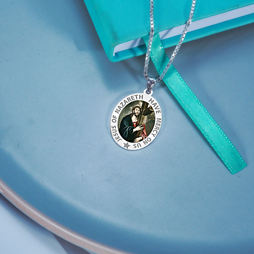 All Religious Medals are Customizable. We can change the spelling, your language, names etc, ex: change "Pray for Us" to "Pray For Me". Just let us know in "special instructions"Color Laser is a patent pending process, color is guaranteed to last foreverColor Medals can be worn in the pool, shower, etc. without affecting the image. We guarantee it.Jesus of Nazareth, also known as Jesus Christ, is the central figure of Christianity, revered by most Christians as the incarnation of God. Jesus is also an important figure in several other religions. The main sources of information regarding Jesus' life and teachings are the gospels. Most scholars in the fields of history and biblical studies agree that Jesus was a Galilean Jew, was regarded as a teacher and healer, was baptized by John the Baptist, and was crucified in Jerusalem on orders of Roman Governor Pontius Pilate, on the charge of sedition against the Roman Empire.