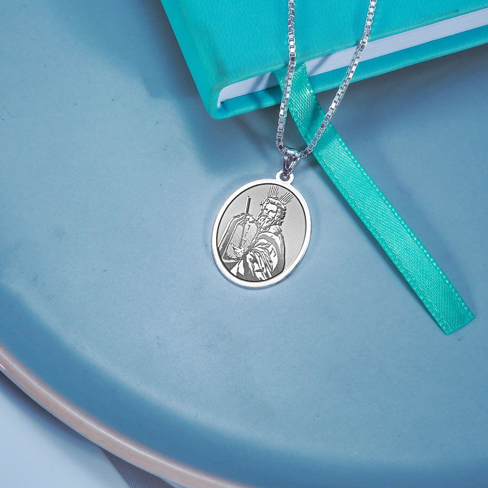 All Religious Medals are Customizable. We can change the spelling, your language, names etc, ex: change "Pray for Us" to "Pray For Me". Just let us know in "special instructions"Moses in both the Septuagint and the New Testament was a 13th century BC Biblical Hebrew religious leader, lawgiver, prophet, and military leader, to whom the authorship of the Torah is traditionally attributed. He is also an important prophet in Judaism, Christianity, and many other faiths. According to the book of Exodus, Moses was born to a Hebrew mother who hid him when a Pharaoh ordered all newborn Hebrew boys to be killed, and ended up being adopted into the Egyptian royal family. After killing an Egyptian slave master, he fled and became a shepherd, and was later commanded by God to deliver the Hebrews from slavery. After the Ten Plagues were unleashed on Egypt, he led the Hebrew slaves out of Egypt, through the Red Sea, and they wandered in the desert for 40 years. Despite living to 120, he did not enter the Land of Israel, as he disobeyed God when God instructed him on how to bring forth water from a rock in the desert.