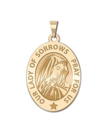 All Religious Medals are Customizable. We can change the spelling, your language, names etc, ex: change "Pray for Us" to "Pray For Me". Just let us know in "special instructions"Our Lady of Sorrows s a title of the Blessed Virgin Mary and the name of a feast celebrated on September 15. The Seven Dolours of the Virgin (or Seven Sorrows of the Virgin) is a related devotion in the Catholic Church which has its origins in the New Testament prophecy of Simeon (Luke 2:35). She is the patron saint of Slovakia, the state of Mississippi, the Congregation of Holy Cross, and Mola di Bari, Italy.