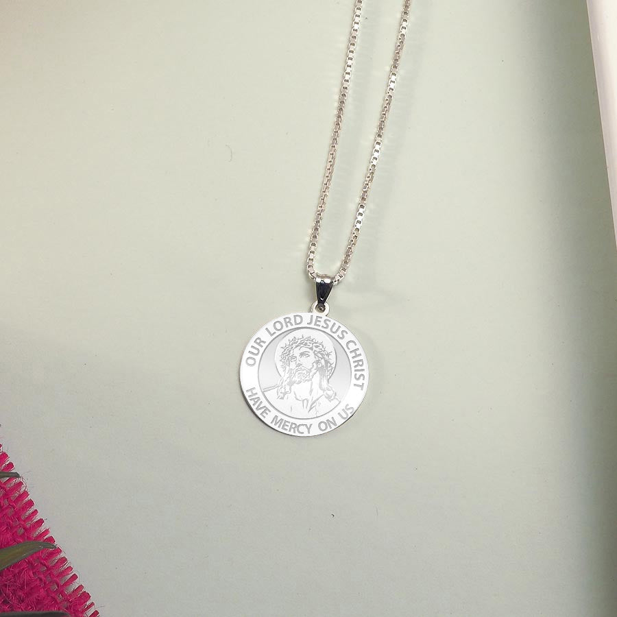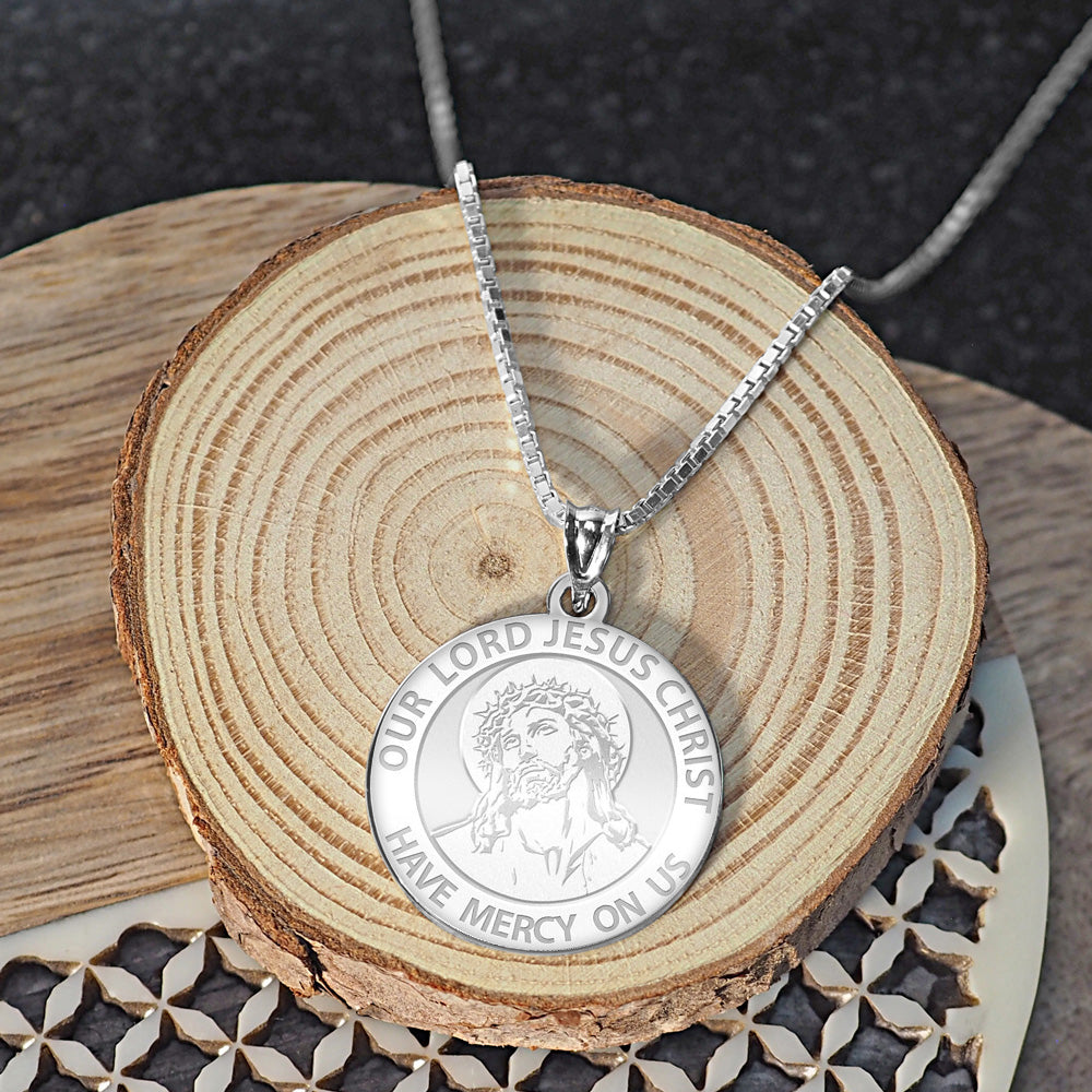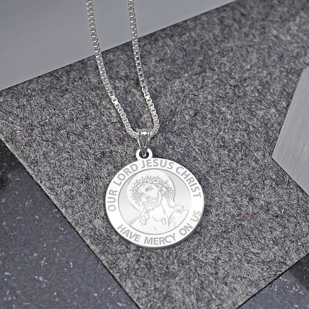 All Religious Medals are Customizable. We can change the spelling, your language, names etc, ex: change "Pray for Us" to "Pray For Me". Just let us know in "special instructions"The Image depicts a close-up of the Lord Jesus Christ bearing the crown of thorns.