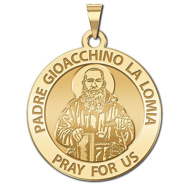 All Religious Medals are Customizable. We can change the spelling, your language, names etc, ex: change "Pray for Us" to "Pray For Me". Just let us know in "special instructions"Padre Gioacchino La Lomia (Canicatti, Sicily March 3, 1831 - July 30, 1905) was a priest of the Order of Friars Minor Capuchin (OFM Cappuccino), a missionary and a preacher. He was born Gaetano La Lomia on March 3, 1831 in Canicatti, Sicily in Italy. The son of Don Nicolo' and his wife Eleonora, the Barons La Lomia, a very wealthy family. Gaetano La Lomia entered the monastery as Gioacchino La Lomia in 1852 and was ordained a priest into the OFM Cappuccino in Palermo, Sicily in Italy in 1855. He served his papal missionary in the Amazonian Forest of Brazil for twelve years. Together with other missionary brothers, he preached the Gospel to thirteen villages, and dedicated himself to the improvement of health and the well-being of the Brazilian people and to the improvement of the culture in the region. He returned to Italy in 1880 and started the Convent of the OFM Cappuccino of Canicatti, Sicily in the Madonna della Rocca church. Although he was born to a wealthy family, he chose a life of poverty and humility. He was famous for performing many miracles both in Brazil and in Italy. His humility and charisma was recognized by all Sicilians as well as the Emperor Don Pedro II of Brazil whose confessions he also heard. Padre Gioacchino became a candidate of the stages for Canonization in the Roman Catholic Church in the Diocese of Agrigento, Sicily, in 1928. Four stages lead to Canonization with the title of Saint: first is Servant of God, second is Venerable, third is Blessed, then Saint. The candidate to these higher honors becomes "Venerable" when his or her case has been officially accepted by the Sacred Congregation of Rites and when a special Pa