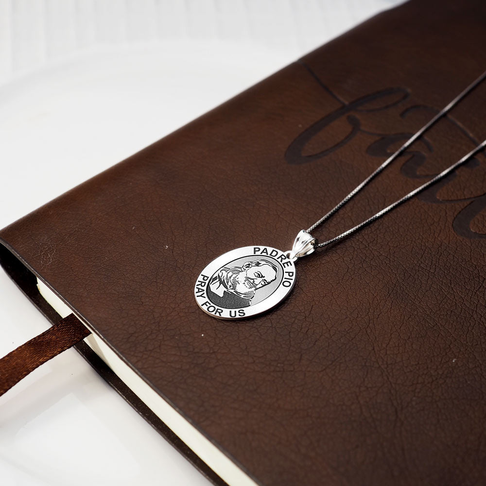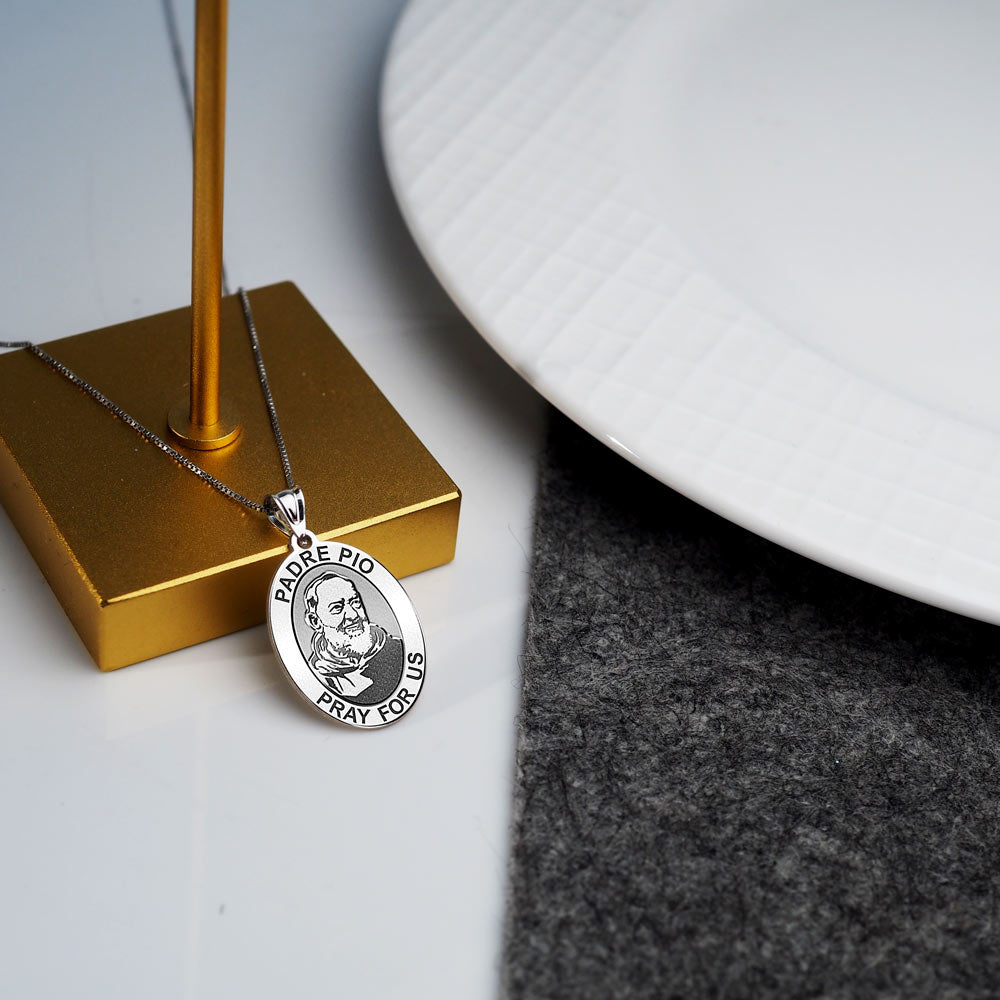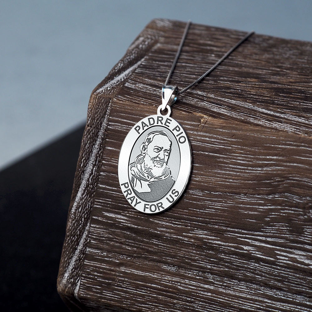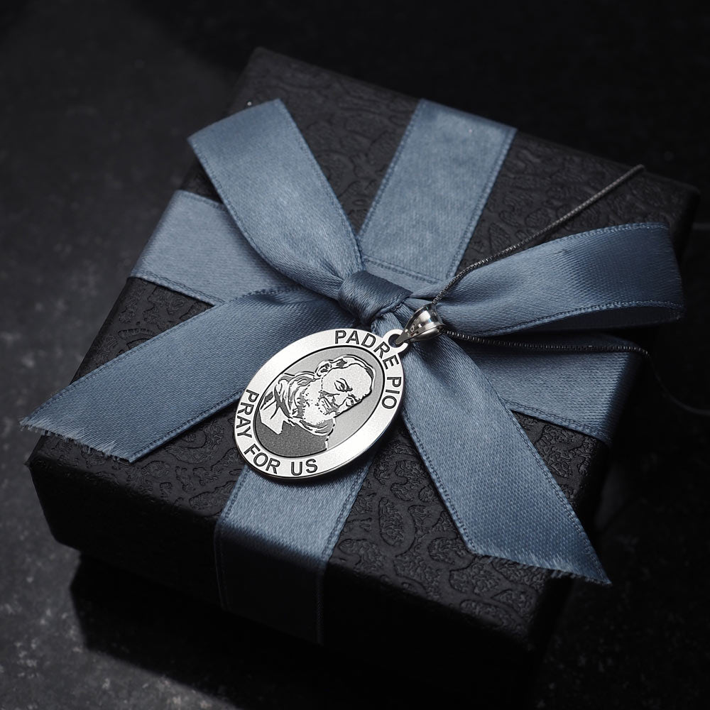 All Religious Medals are Customizable. We can change the spelling, your language, names etc, ex: change "Pray for Us" to "Pray For Me". Just let us know in "special instructions"Francesco Forgione, later known as Padre Pio, (May 25, 1887 September 23, 1968), canonized as Saint Pio of Pietrelcina, was an Italian Roman Catholic Capuchin priest who is now venerated as a saint in the Roman Catholic Church. He was given the name Pio when he joined the Order of Friars Minor Capuchin, and was popularly known as Padre Pio after his ordination to the priesthood. He became famous for his stigmata.