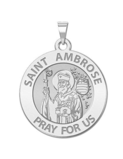 All Religious Medals are Customizable. We can change the spelling, your language, names etc, ex: change "Pray for Us" to "Pray For Me". Just let us know in "special instructions"Saint Ambrose (c. 338 4 April 397) was a bishop of Milan who became one of the most influential ecclesiastical figures of the fourth century. He is counted as one of the four original doctors of the Church. Ambrose was born into a Roman Christian family between about 337 and 340 and was raised in Trier. He was the son of a praetorian prefect of Gallia Narbonensis[1]; his mother was a woman of intellect and piety. Ambrose's siblings, Satyrus (who is the subject of Ambrose's De excessu fratris Satyri) and Marcellina, are also venerated as saints. There is a legend that as an infant, a swarm of bees settled on his face while he lay in his cradle, leaving behind a drop of honey. His father considered this a sign of his future eloquence and honeyed tongue. For this reason, bees and beehives often appear in the saint's symbology. After the early death of his father, Ambrose followed his father's career. He was educated in Rome, studying literature, law, and rhetoric. Praetor Anicius Probus first gave him a place in the council and then in about 372 made him consular prefect of Liguria and Emilia, with headquarters at Milan, which was then beside Rome the second capital in Italy. Ambrose was a governor in northern Italy before he became the Bishop of Milan. Ambrose never married.