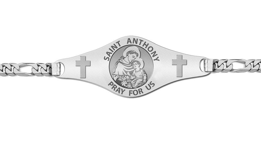 - Comes with a Lobster Claw Clasp. This bracelet is Unisex and can be for a man or woman. 7 Inches is standard for women 8 Inches is standard for men. Mens Plate Size: 1 3/4 Inches Wide x 1/2 Inch Tall Womens Plate Size: 1 Inches Wide x 1/3 Inches Tall One of the most beloved of saints. His images and statues are ubiquitous. Proclaimed a Doctor of the Church on January 16, 1946, he is sometimes called "Evangelical Doctor". He is especially invoked for the recovery of things lost ("Saint Anthony, Saint Anthony, please come around. Something is lost and cannot be found."). On January 27, 1907 in Beaumont, Texas, a church was dedicated and named in honor of St. Anthony of Padua. The church was later designated a cathedral in 1966 with the formation of the Roman Catholic Diocese of Beaumont, but was not formally consecrated. On April 28, 1974, St Anthony Cathedral was dedicated and consecrated by Bishop Warren Boudreaux. In 2006 Pope Benedict XVI granted St. Anthony Cathedral the designation of minor basilica. St. Anthony Cathedral Basilica celebrated its 100th anniversary on January 28, 2007. Seventeenth century Spanish missionaries came across a small Native American community along what was then known as the Yanaguana River on the feast day of Saint Anthony and renamed the river and eventually a mission built nearby in his honor. This mission would at first become the focal point of a small community that would eventually grow in size and scope to become the city of San Antonio.