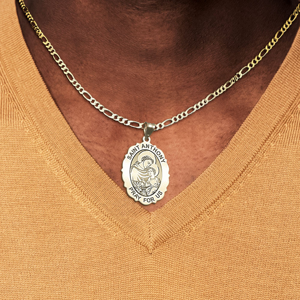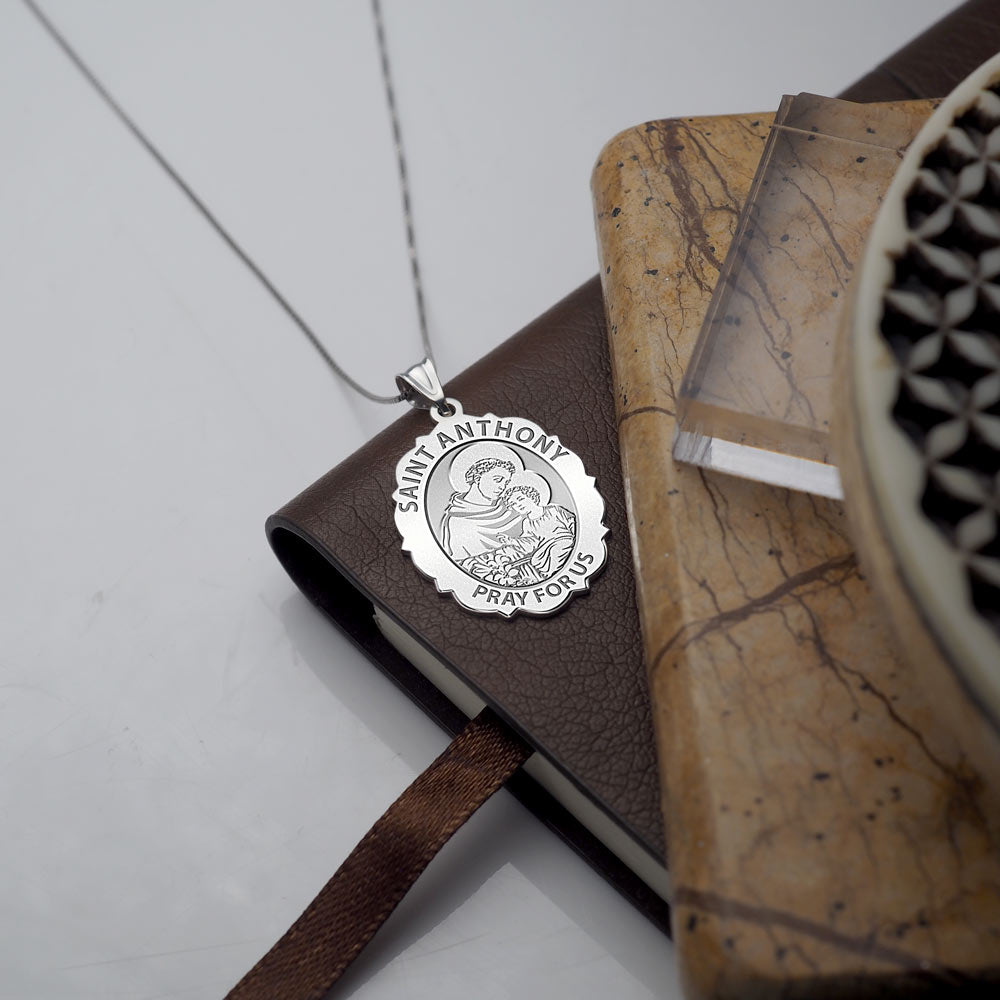 All Religious Medals are Customizable. We can change the spelling, your language, names etc, ex: change "Pray for Us" to "Pray For Me". Just let us know in "special instructions"One of the most beloved of saints. His images and statues are ubiquitous. Proclaimed a Doctor of the Church on January 16, 1946, he is sometimes called "Evangelical Doctor". He is especially invoked for the recovery of things lost ("Saint Anthony, Saint Anthony, please come around. Something is lost and cannot be found."). On January 27, 1907 in Beaumont, Texas, a church was dedicated and named in honor of St. Anthony of Padua. The church was later designated a cathedral in 1966 with the formation of the Roman Catholic Diocese of Beaumont, but was not formally consecrated. On April 28, 1974, St Anthony Cathedral was dedicated and consecrated by Bishop Warren Boudreaux. In 2006 Pope Benedict XVI granted St. Anthony Cathedral the designation of minor basilica. St. Anthony Cathedral Basilica celebrated its 100th anniversary on January 28, 2007. Seventeenth century Spanish missionaries came across a small Native American community along what was then known as the Yanaguana River on the feast day of Saint Anthony and renamed the river and eventually a mission built nearby in his honor. This mission would at first become the focal point of a small community that would eventually grow in size and scope to become the city of San Antonio.