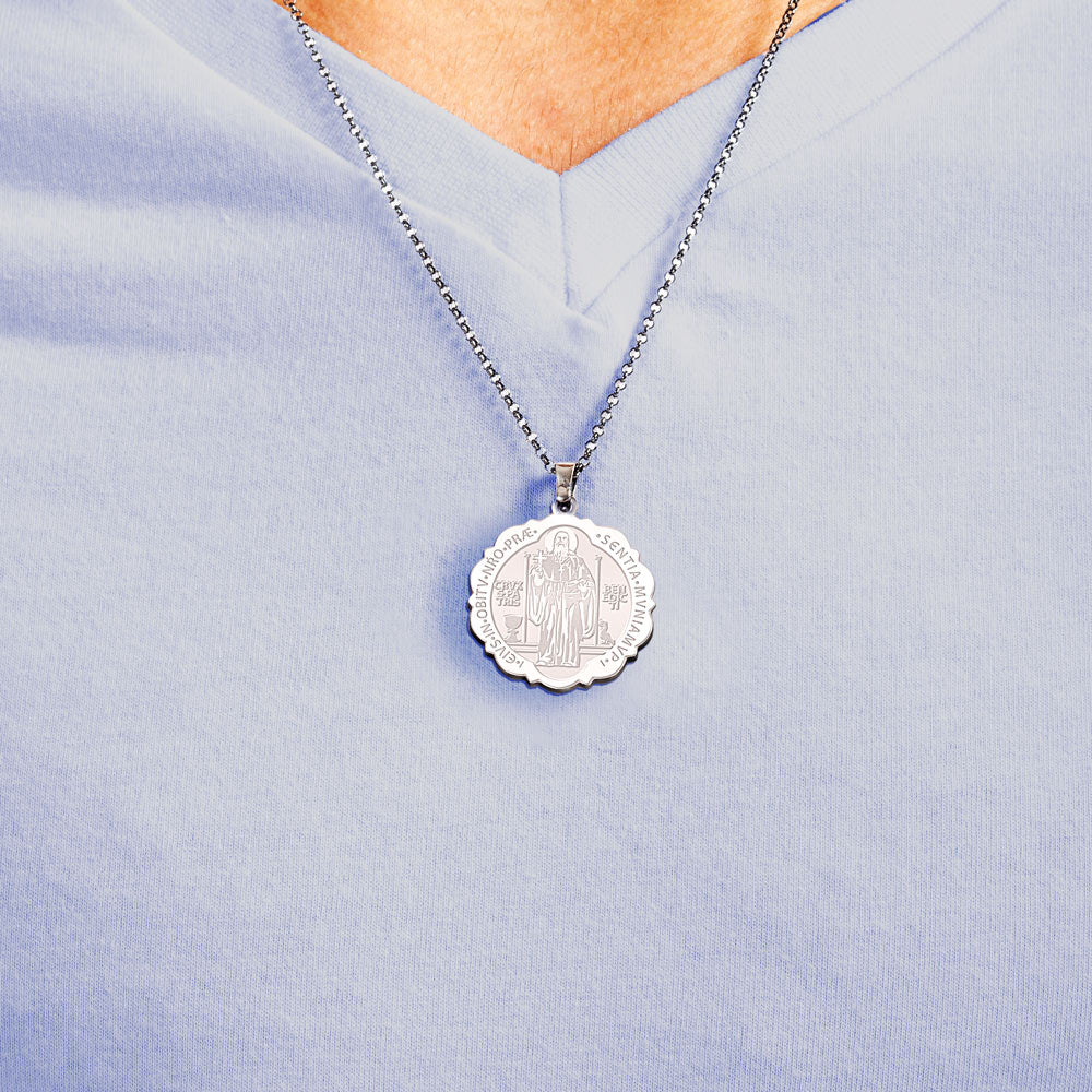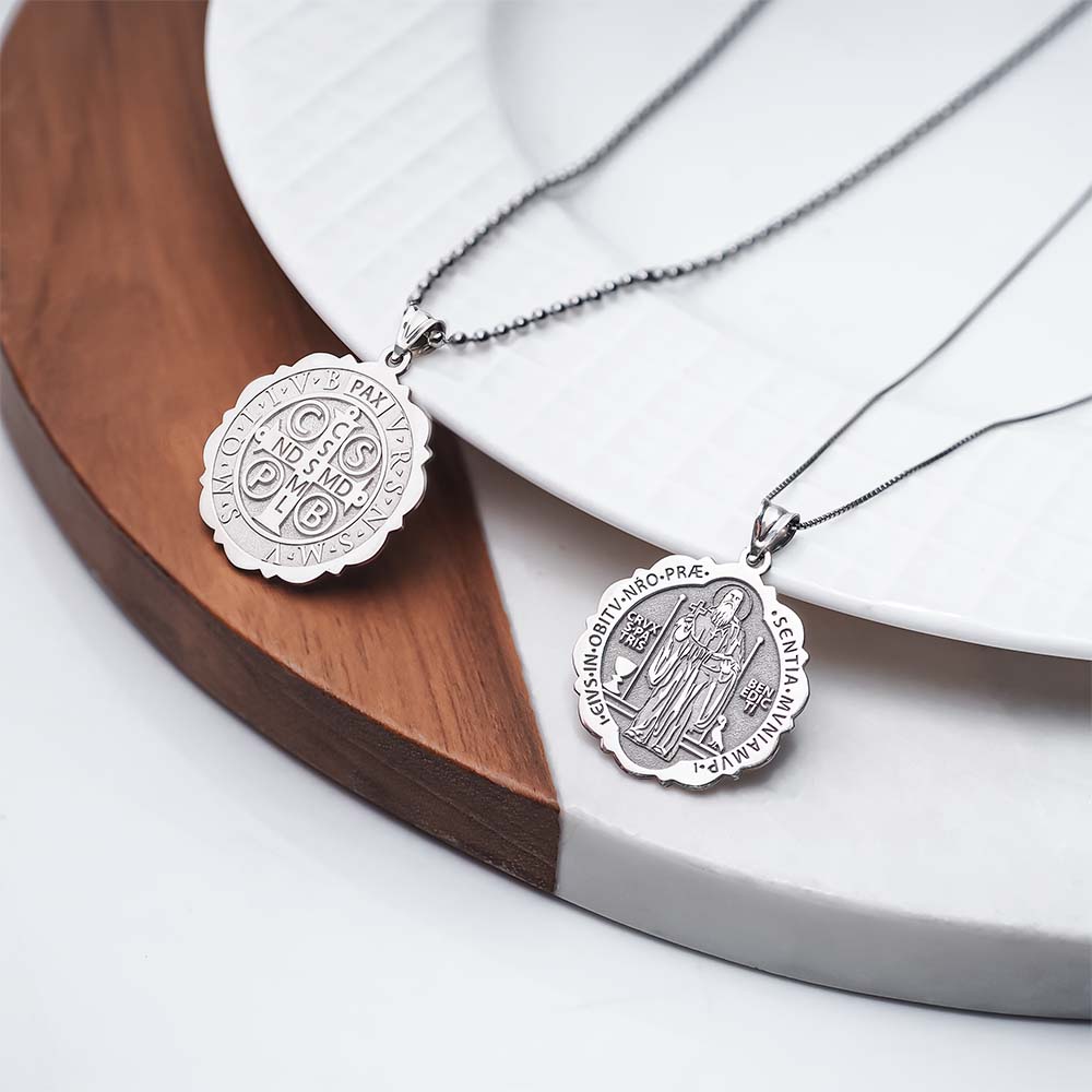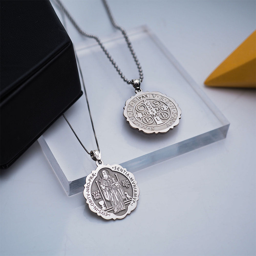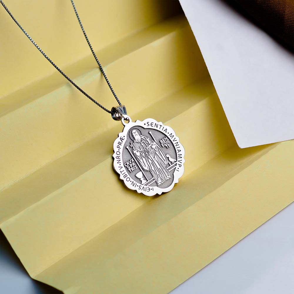 All Religious Medals are Customizable. We can change the spelling, your language, names etc, ex: change "Pray for Us" to "Pray For Me". Just let us know in "special instructions"Saint Benedict of Nursia was a founder of Christian monastic communities and a rule giver for monks living in community. His purpose may be gleaned from his Rule, namely that "Christ may bring us all together to life eternal". The Roman Catholic Church canonized him in 1220. Benedict founded twelve other communities for monks, the best known of which is his first monastery at Monte Cassino in the mountains of southern Italy. There is no evidence that he intended to found also a religious order. The Order of St Benedict is of modern origin and, moreover, not an "order" as commonly understood but merely a confederation of congregations into which the traditionally independent Benedictine abbeys have affiliated themselves for the purpose of representing their mutual interests, without however ceasing any of their autonomy. Benedict's main achievement was a "Rule" containing precepts for his monks, referred to as the Rule of Saint Benedict. St Benedict became one of the most influential religious rules in Western Christendom. For this reason Benedict is often called "the founder of western Christian monasticism".