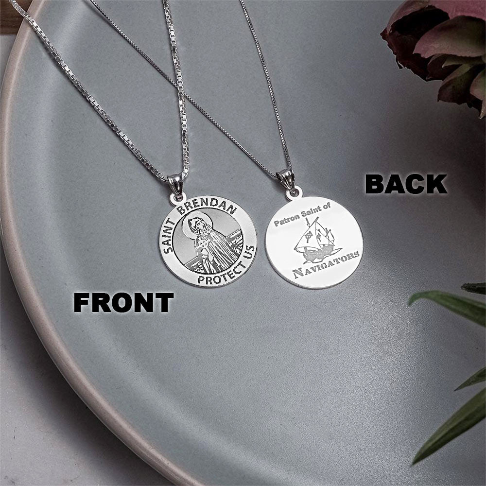All Religious Medals are Customizable. We can change the spelling, your language, names etc, ex: change "Pray for Us" to "Pray For Me". Just let us know in "special instructions"St. Brendan, called "the Navigator", "the Voyager", or "the Bold" is one of the early Irish monastic saints whose legends reflect their history. He is chiefly renowned for his semi-legendary quest to the Isle of the Blessed. The Voyage of St. Brendan could be called an immram (Irish voyage story). He was one of the Twelve Apostles of Ireland.