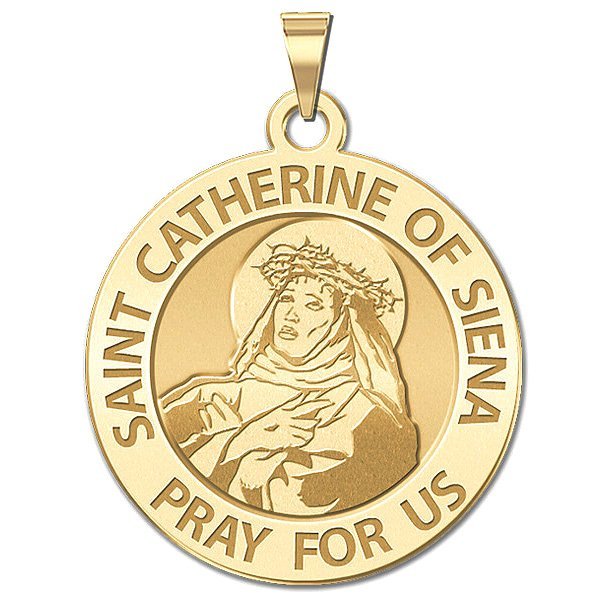 Saint Catherine of Siena, O.P. (March 25, 1347 April 29, 1380) was a Tertiary of the Dominican Order, and a Scholastic philosopher and theologian. She also worked to bring the Papacy back to Rome from its displacement in France, and to establish peace among the Italian city-states. In about 1366, St Catherine experienced what she described in her letters as a "Mystical Marriage" with Jesus, after which she began to tend the sick and serve the poor. In 1370, she received a series of visions of Hell, Purgatory, and Heaven, after which she heard a command to leave her withdrawn life and enter the public life of the world. Being illiterate, she dictated several letters to men and women in authority, especially begging for peace between the republics and principalities of Italy and for the return of the Papacy from Avignon to Rome. She carried on a long correspondence with Pope Gregory XI, also asking him to reform the clergy and the administration of the Papal States. St Catherine died of a stroke in Rome, the spring of 1380, at the age of thirty-three. The people of Siena wished to have her body. There is a myth that explains how Catherine's head was able to get to Siena, where it has been entombed in the Basilica of San Domenico. The people of Siena knew they could not get her whole body past Roman guards and decided to take only her head which they placed in a bag. They were still stopped by guards and they prayed to St Catherine to help them because they knew Catherine would rather be in Siena. When they opened the bag to show the guards, it no longer held her head, but was full of rose petals. Once they got back to Siena they reopened the bag and her